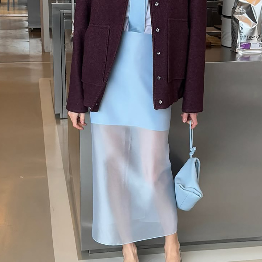 夏の新型デザイン感透視高腰スカート女性2025ファッション気質カジュアル通勤欧米風クロスボーダー