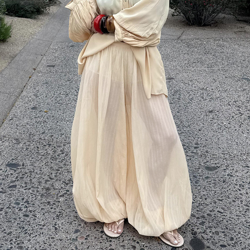 夏の新しいスタイルのルーズバブルレギンス、デザイン、気質、ファッショナブルな女性のズボン、2025クロスボーダーヨーロッパとアメリカの通勤