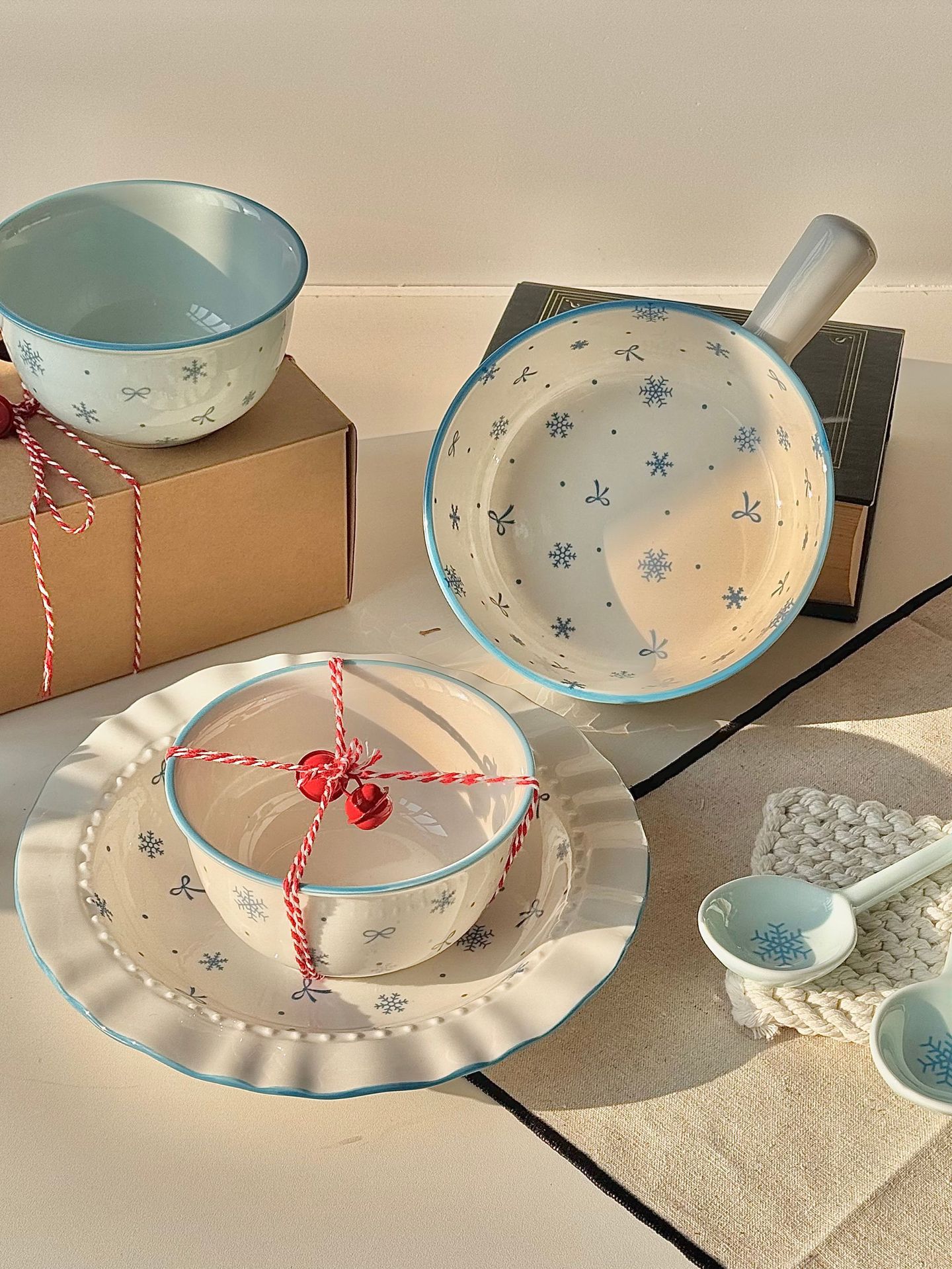 【初雪】陶磁器食器皿家庭用食器高颜値茶碗皿かわいいカップラーメン食器がとてもきれいな茶碗