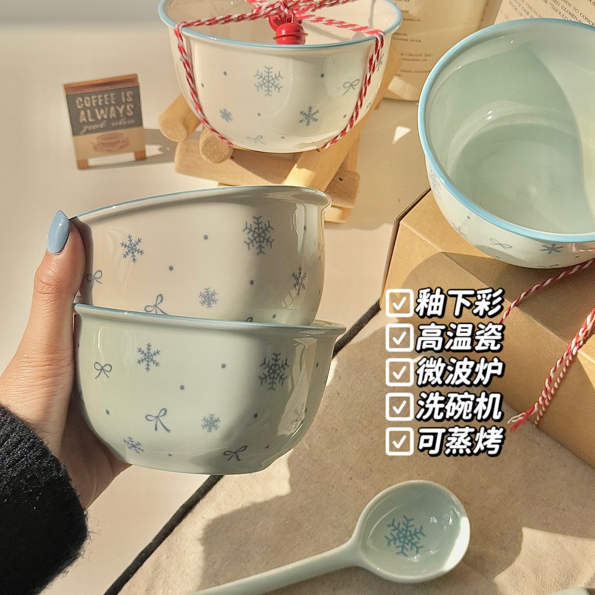 初雪陶磁器茶碗家庭用一人食食器高颜値茶碗皿かわいいカップラーメン茶碗がとてもきれいな茶碗