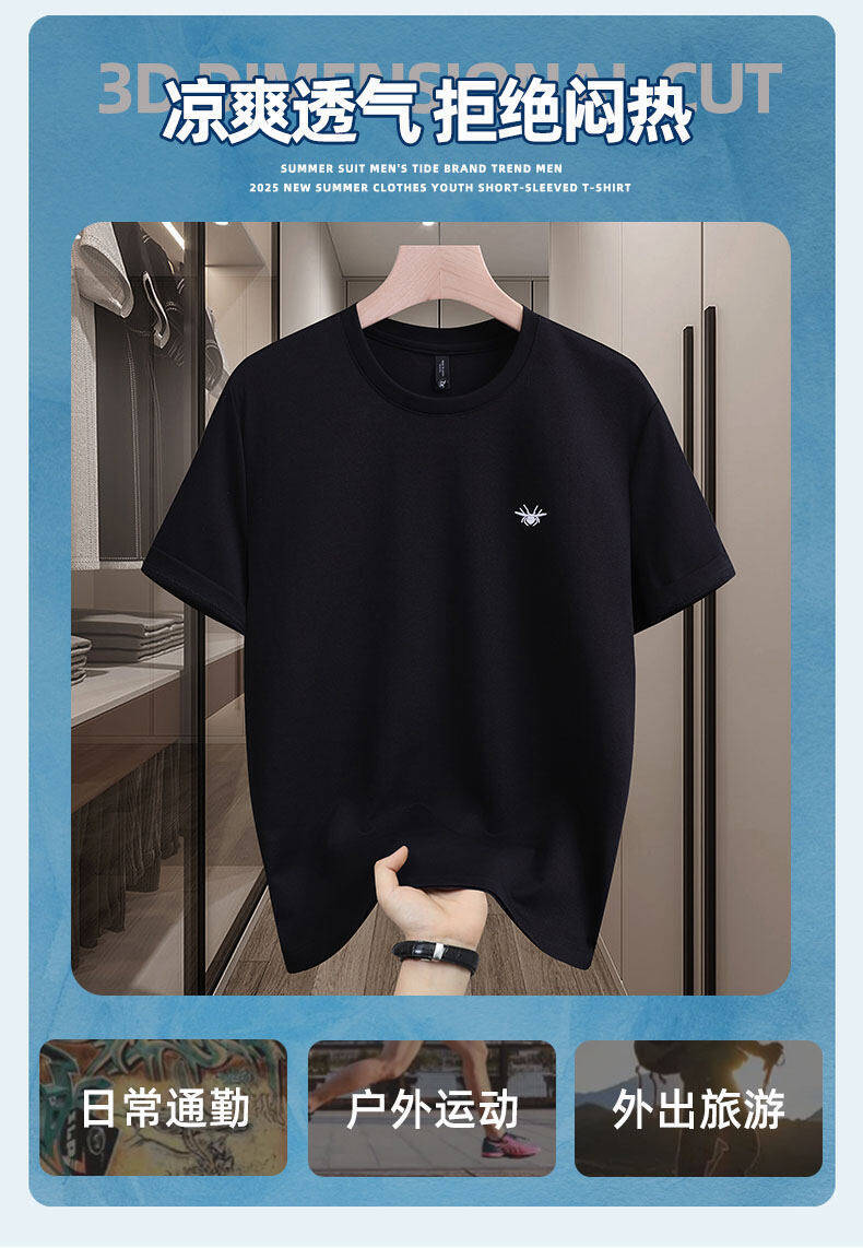 952-2025 夏新作 ラウンドネック半袖Tシャツ メンズ トレンド ファッション 通気性シャツ [4.8]