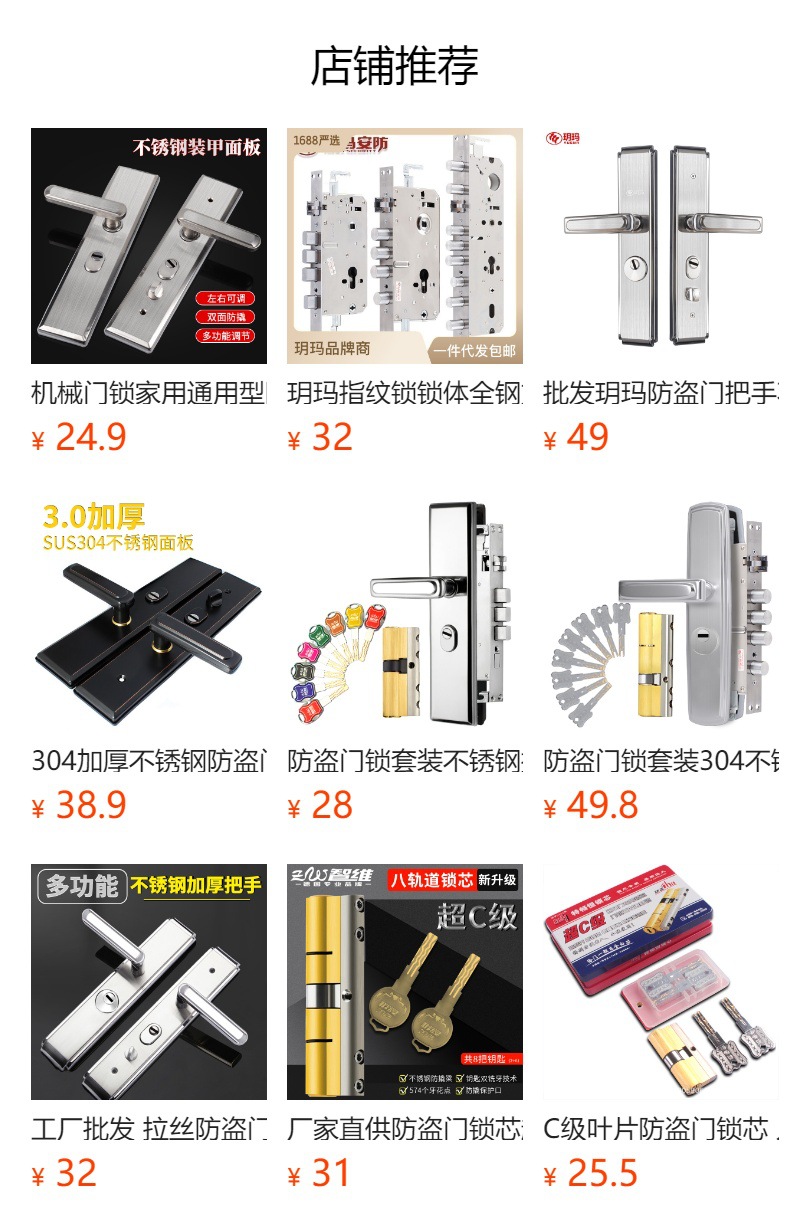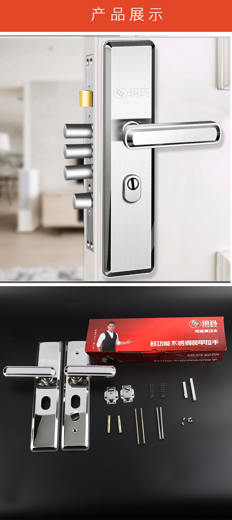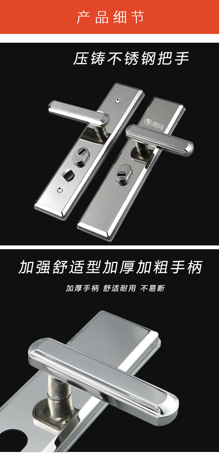 玥玛机械门锁不锈钢防盗门锁家用通用型把手入户门锁面板锁具批发