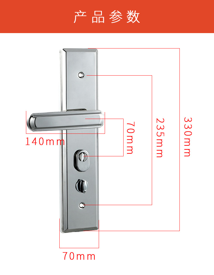 机械门锁5.0不锈钢防盗门锁家用通用型面板入户大门把手锁体