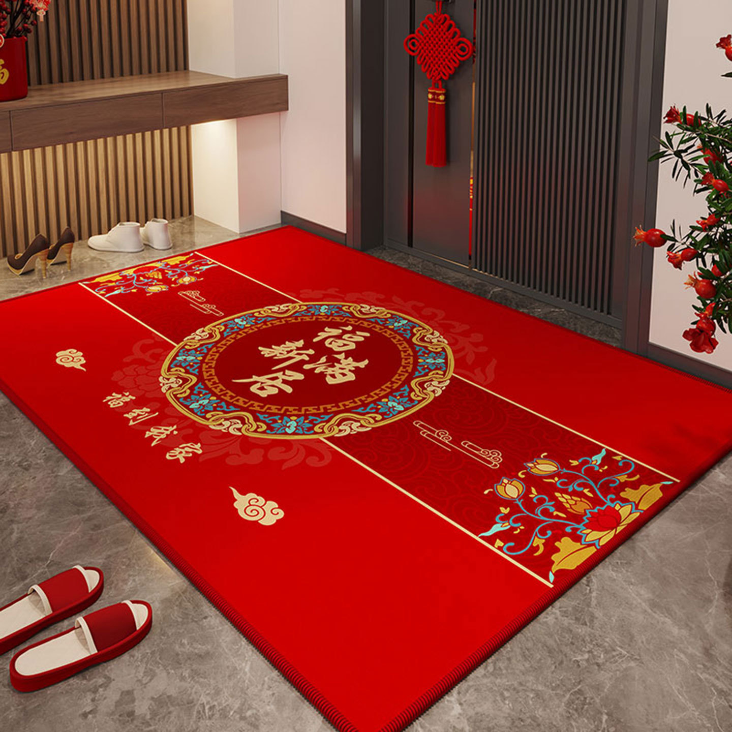 新中式レッド玄関マット、お祝いのための玄関マット、家庭用、カット可能、リビングルームの玄関カーペット
