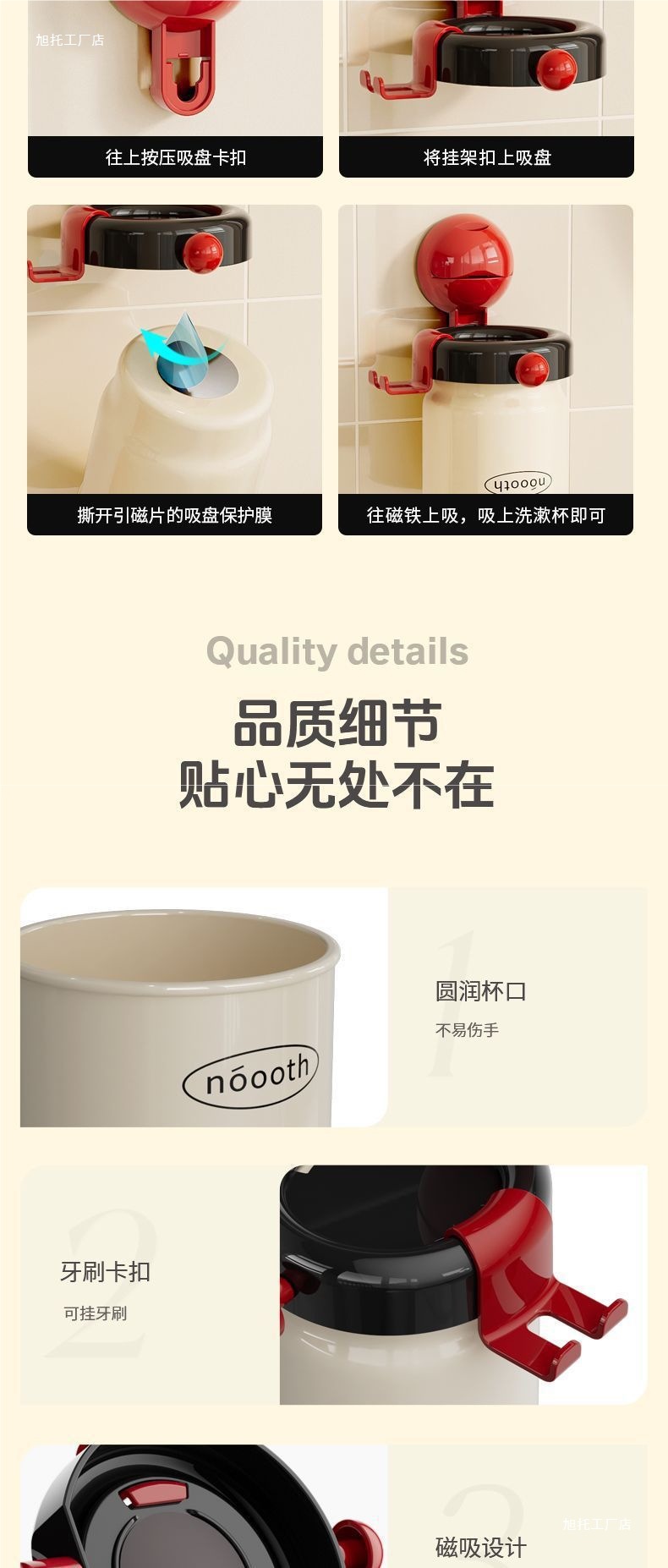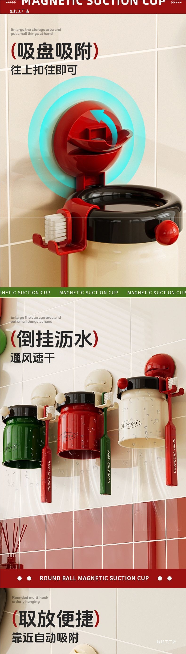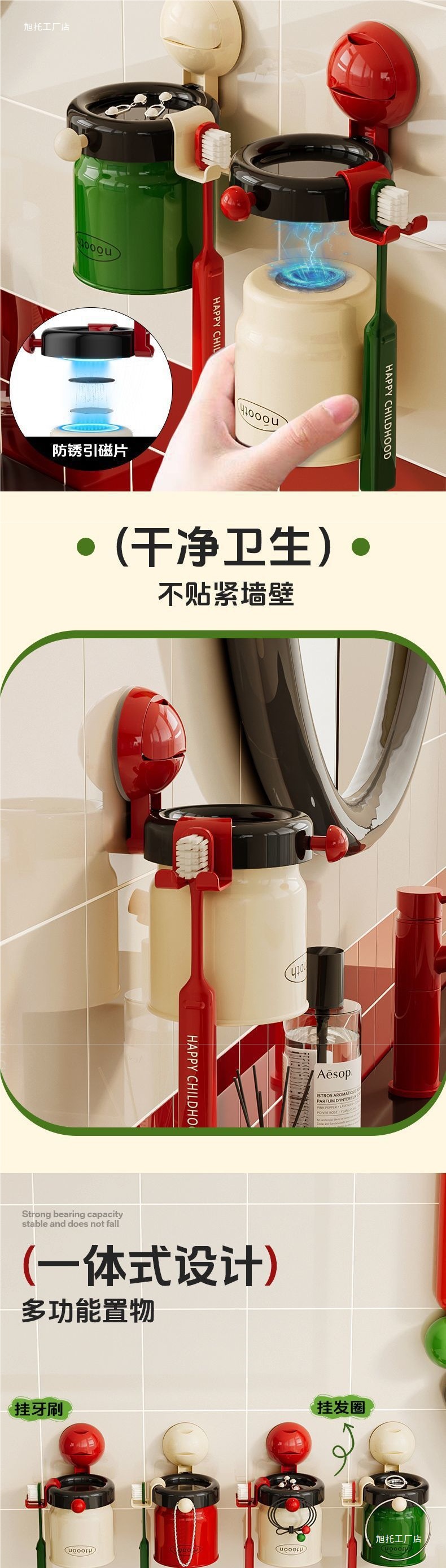 吸盤歯ブラシ収納ラック磁気吸引マウスウォッシュカップ歯磨きカップ浴室壁掛けパンチフリーウォッシュカップセット