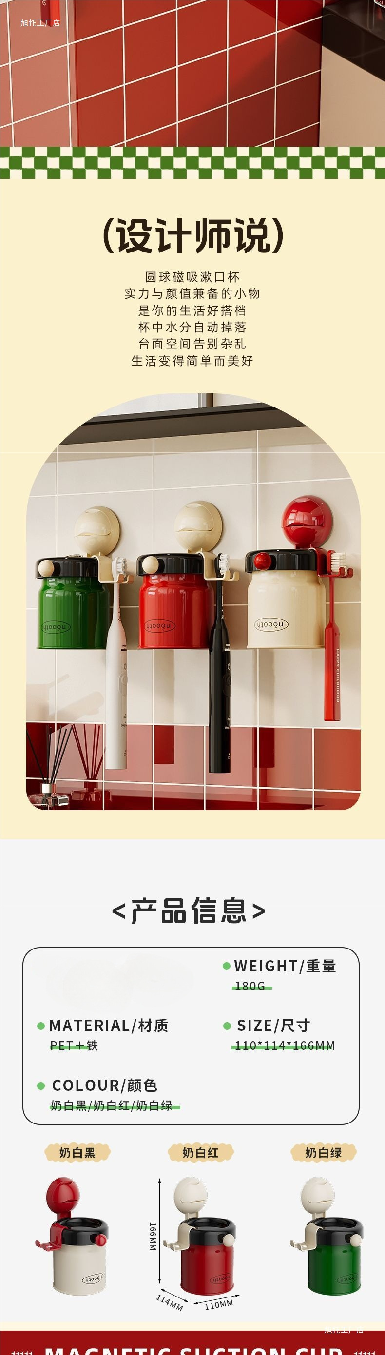 乳白と黒のうがい薬カップ(磁気吸盤/歯ブラシ掛け/フック収納),乳白と赤のマウスウォッシュカップ(磁気吸盤/歯ブラシ掛け/フック収納),乳白緑ベルトマウスウォッシュカップ(磁気吸盤・歯ブラシ掛け・フック収納),カップル2セット(乳白黒+乳白白),カップル2セット(乳白黒+乳白緑),カップル2セット(乳白赤+乳白緑),1家族3パック(乳白黒+乳白赤+乳白緑)