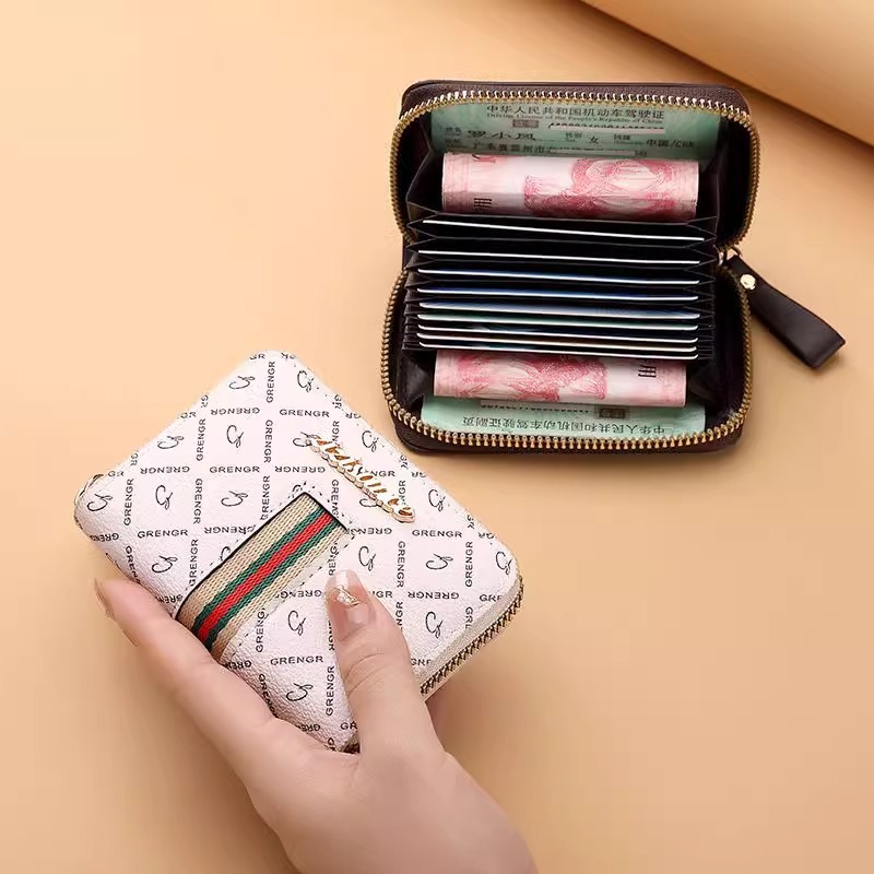 女性用カードホルダー、大容量、複数のカードスロット、絶妙なハイエンド2025抗磁性コンパクトウォレット、オールインワンのクレジットIDストレージ