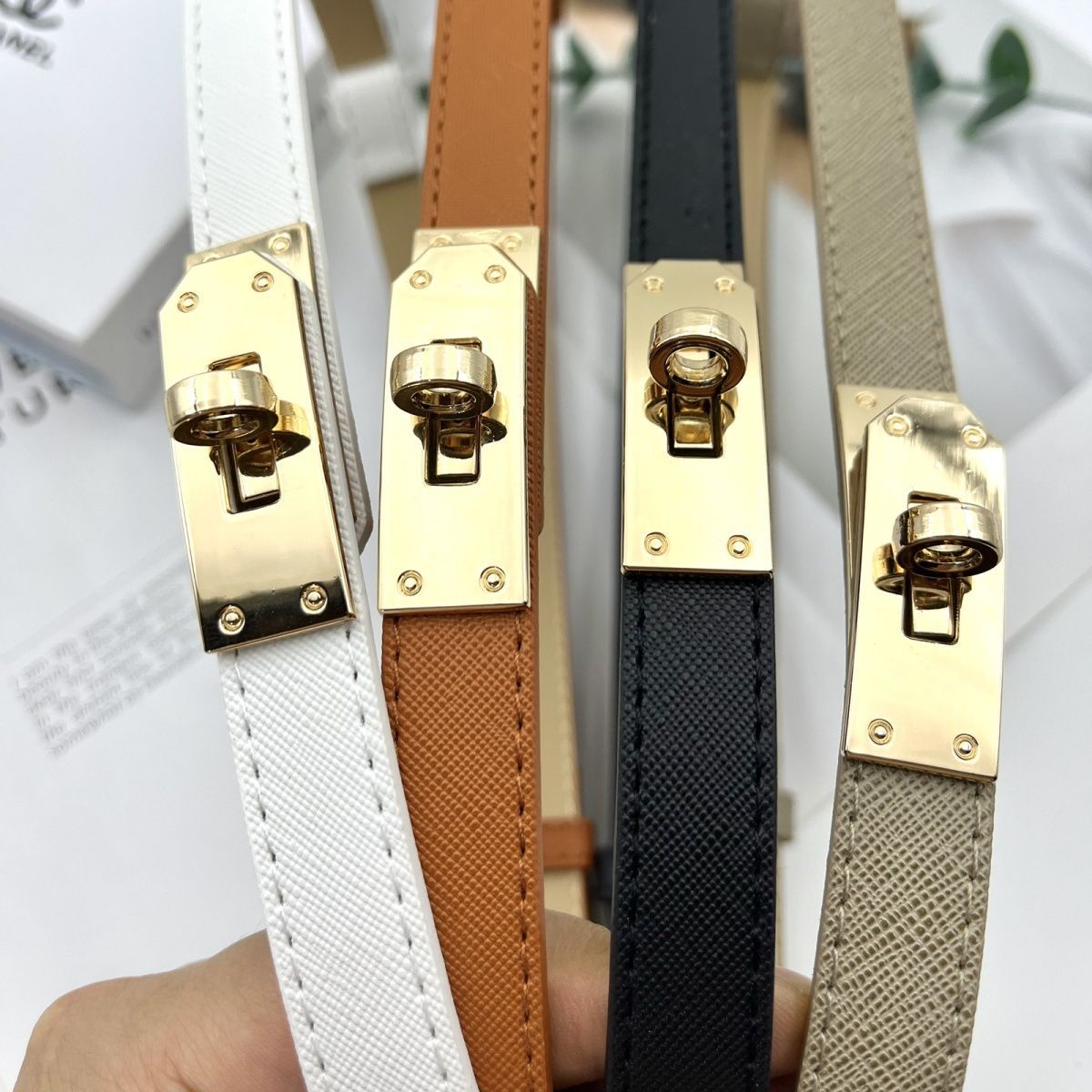 新しいウエストロックバックル狭い細いベルトロングシャツスカート装飾調節可能な小さなベルト在庫卸売 pu 女性