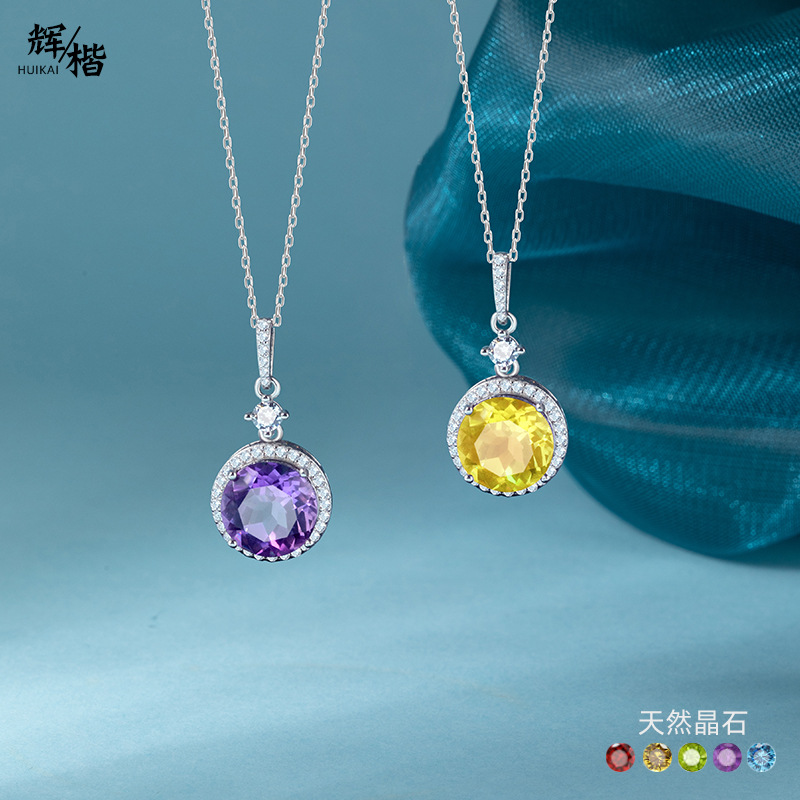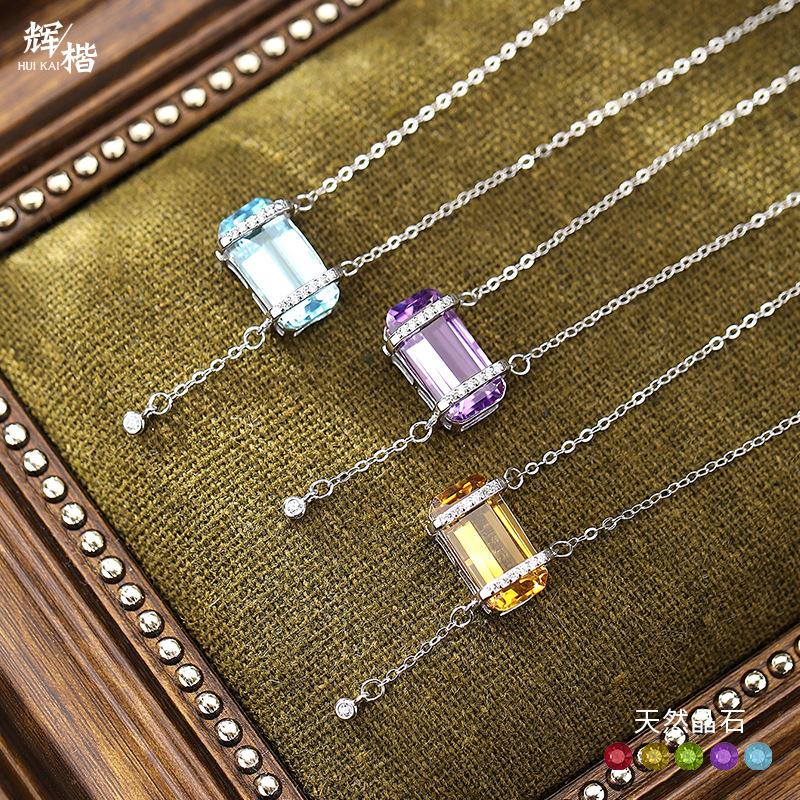 輝楷ジュエリーS925純銀ネックレス女性氷切天然水晶石高級彩宝シリーズ王女ブロックペンダント