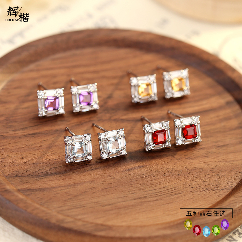 Huikai ジュエリー S925 シルバーイヤリング女性のためのスクエア天然クリスタルストーンイヤリング外国貿易高級ライト高級ジュエリー在庫あり