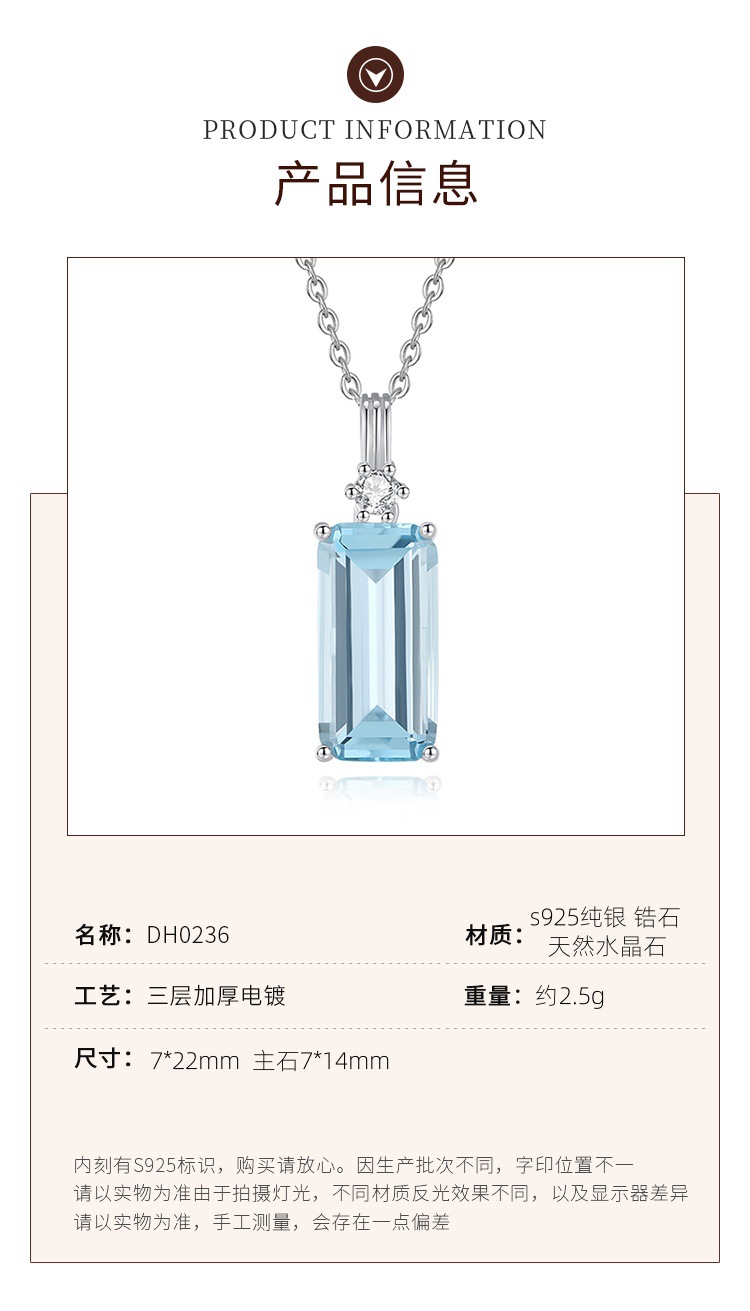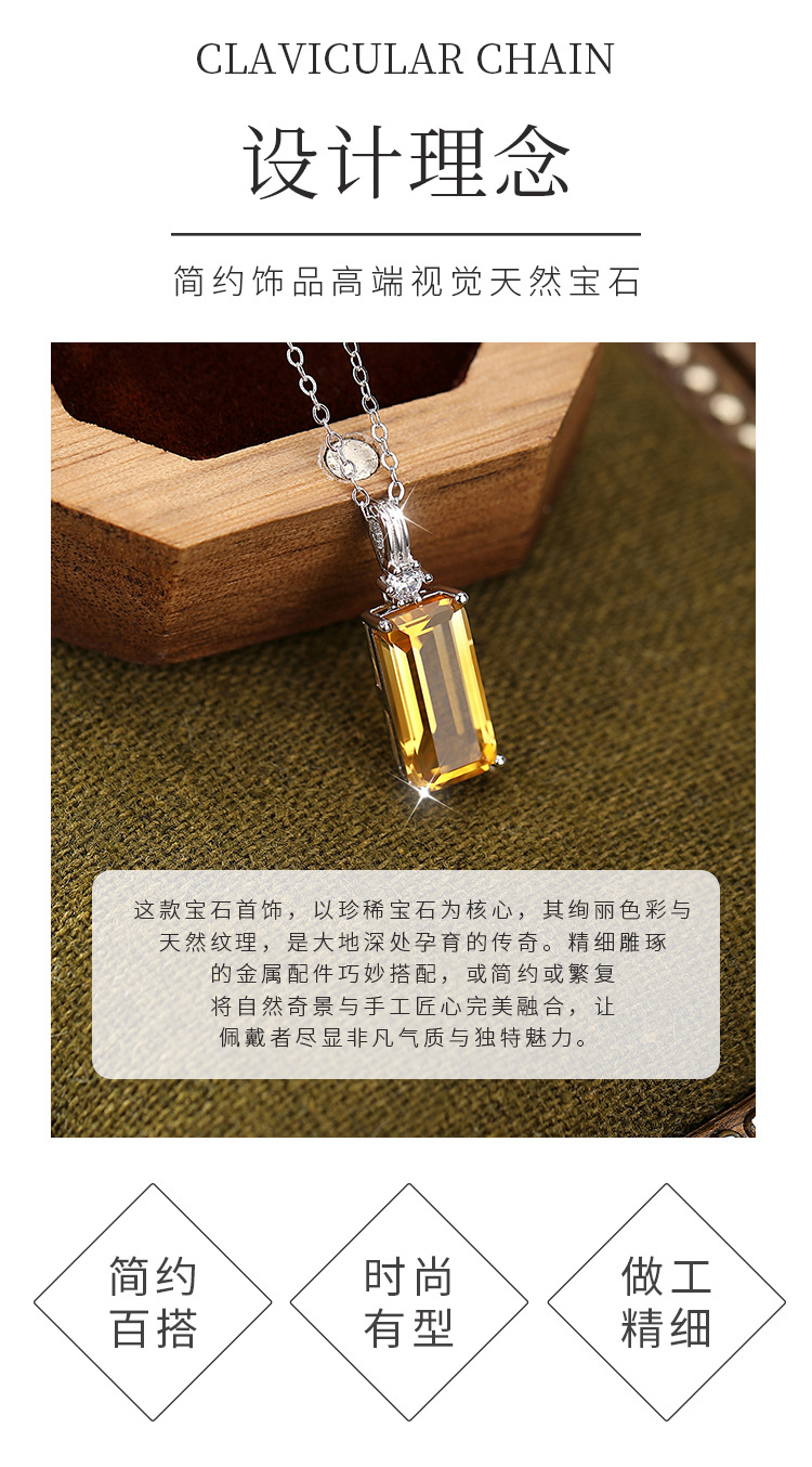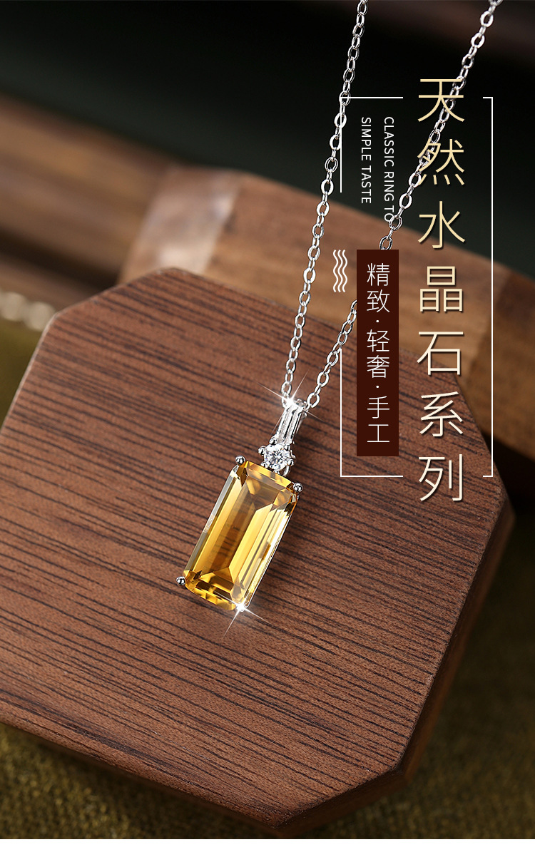 直播爆款s925纯银天然水晶石吊坠经典现货托帕石项链女百搭锁骨链