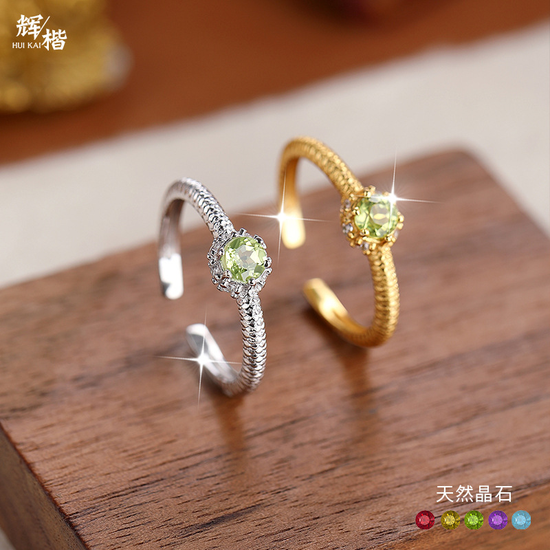 中古風天然結晶石開口指輪s925純銀色落ちしない指輪小紅本爆金高級アクセサリー女