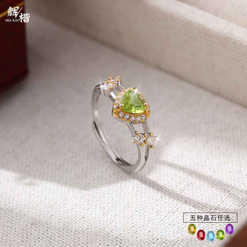 韓国系の爆発的な天然結晶石愛s925純銀指輪の女性の開口部はネット赤と同種の指輪卸売りを調節できる