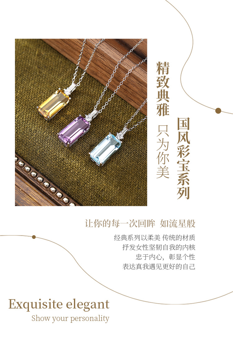 輝楷ジュエリー熱売S925純銀ジュエリーセット天然カラー宝金小ハト卵ペンダント主石6*8mm