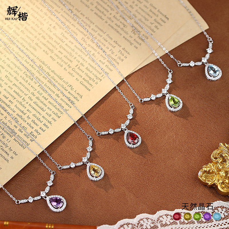 欧米風彩宝アクセサリー卸売り代発s925純銀鎖女性天然水晶石ペンダントネックレス