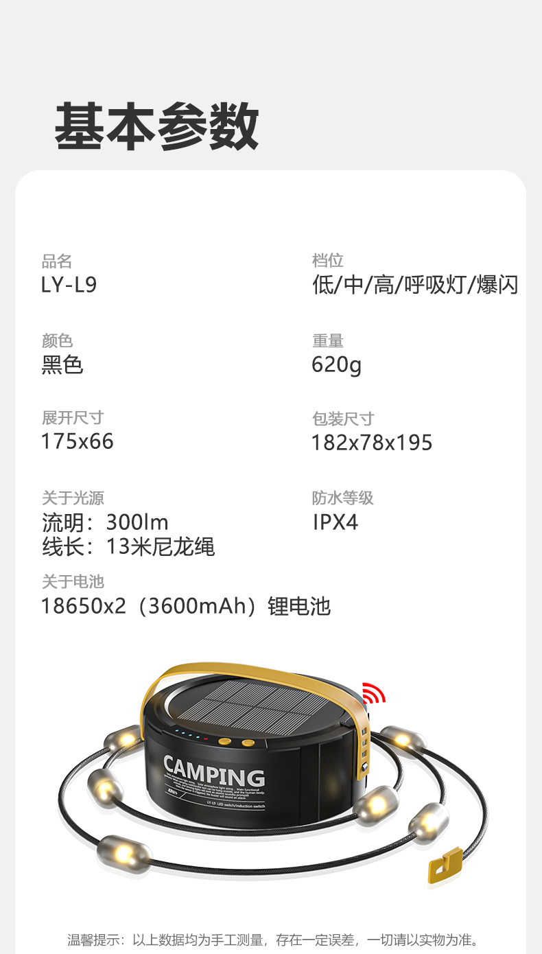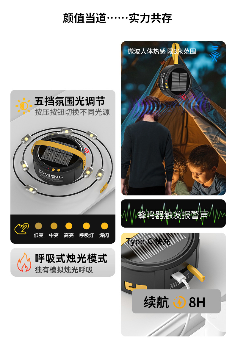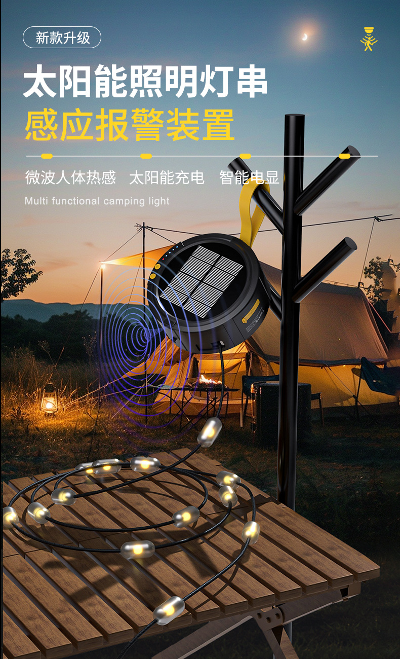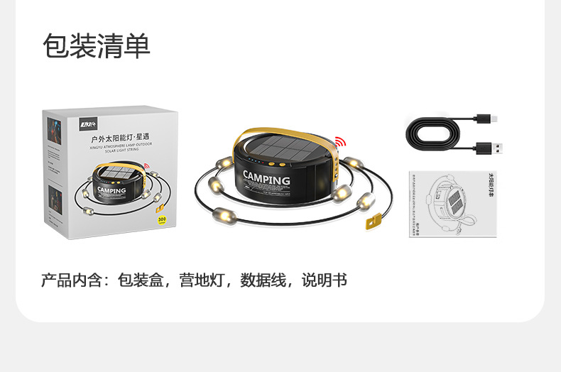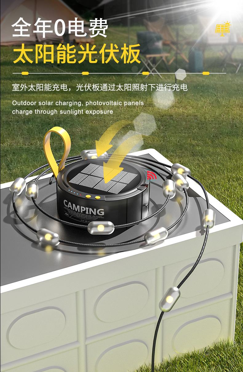 クロスボーダーLED屋外キャンプライト屋外キャンプテント装飾照明ライトソーラーUSB充電雰囲気ストラップライト