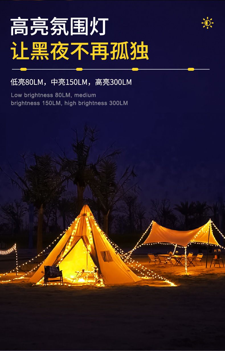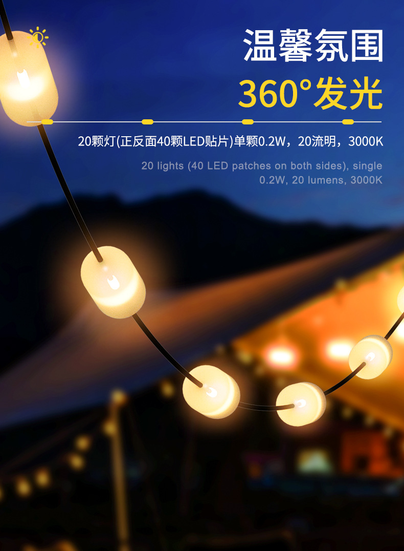 国境を越えた新型キャンプ灯屋外天幕テント灯装飾LED小彩灯連灯キャンプ照明雰囲気灯