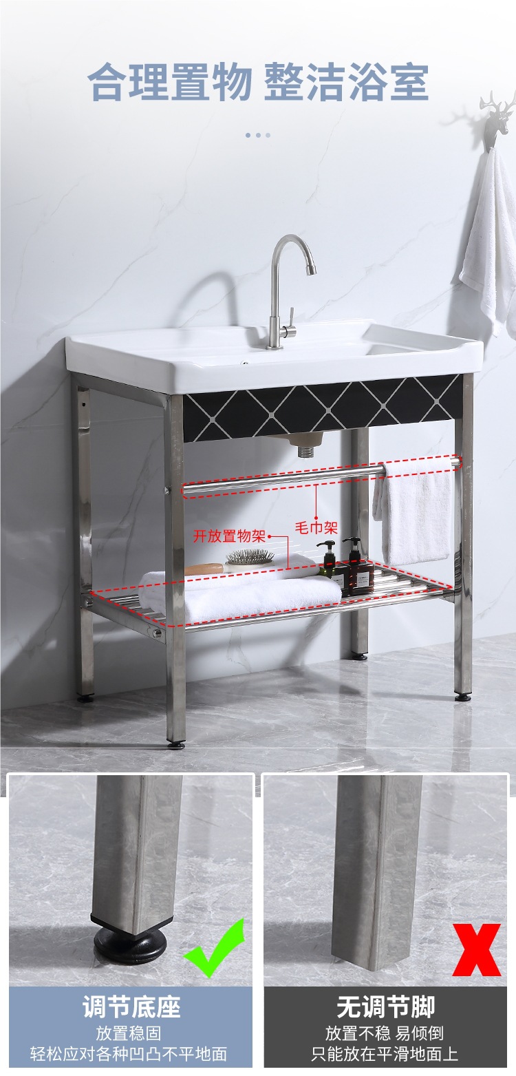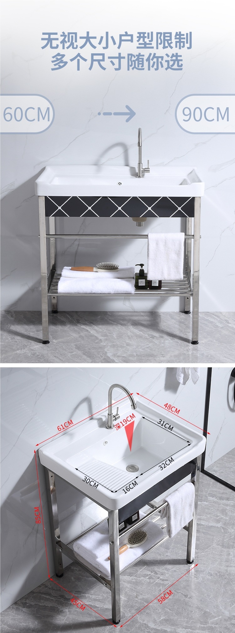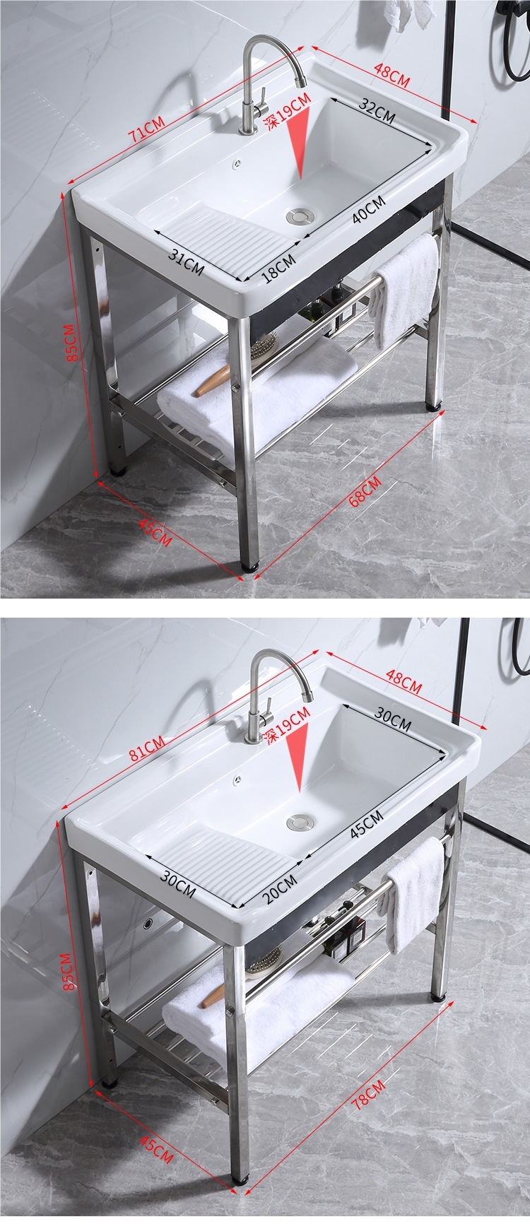 セラミック洗濯洗面器一体型単槽洗面器床置き式洗濯板付きステンレスブラケットバルコニー洗濯洗面器