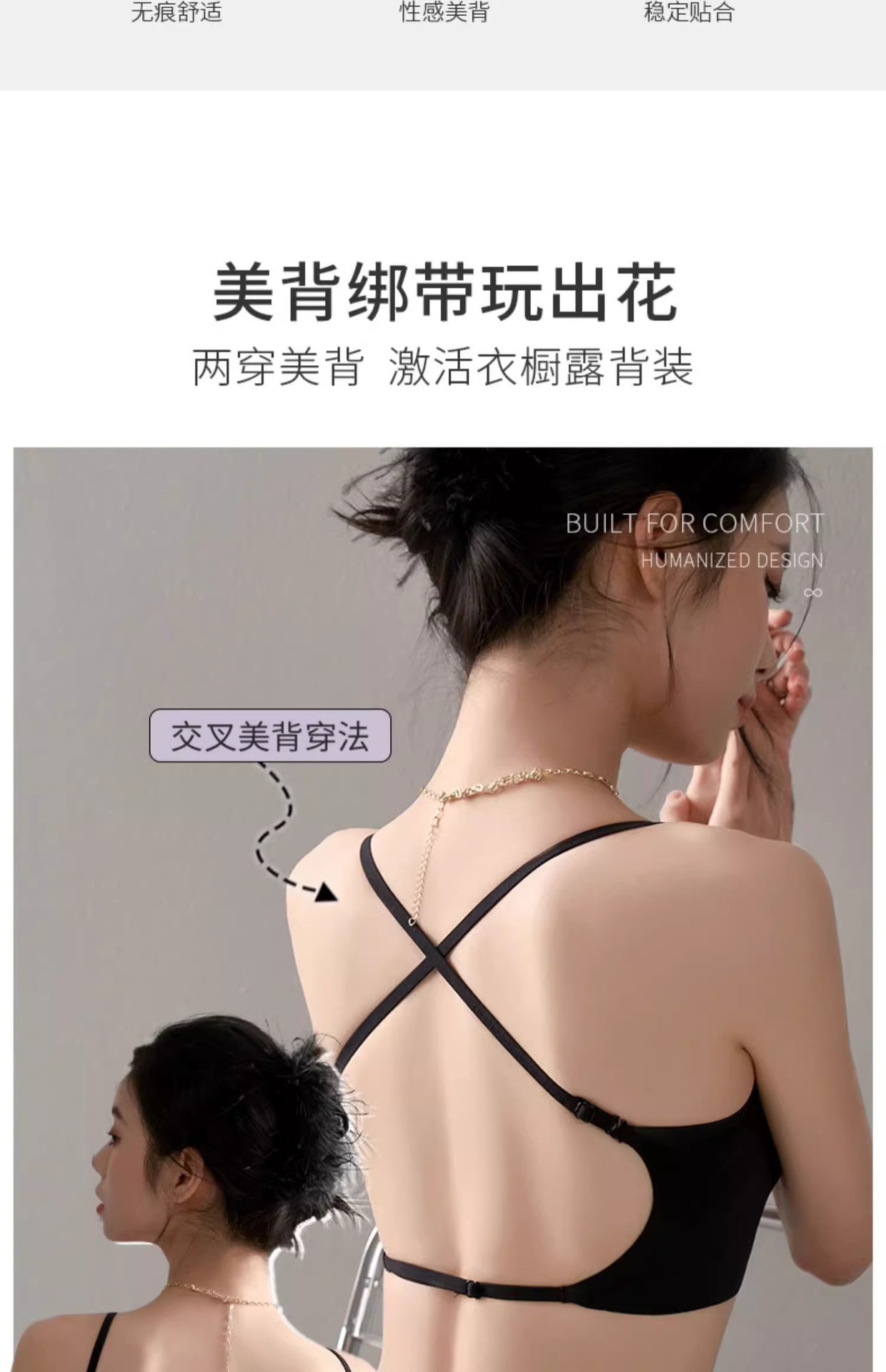 女性用U字型美背中下着、新しい目に見えない大きな背中の開いた小さな胸、大きなシームレスな拡張ホットガールブラジャー夏