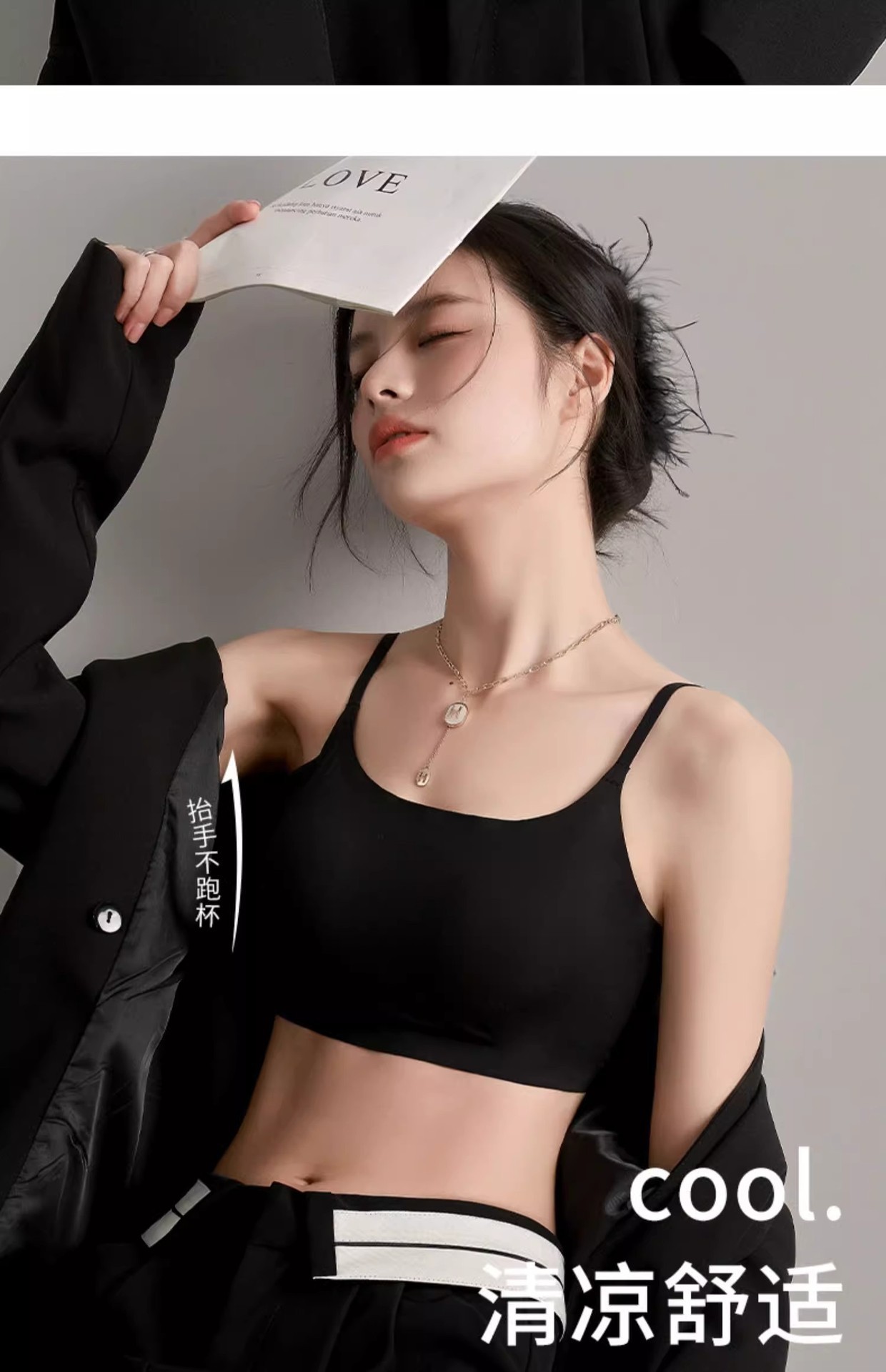 新品超薄冷感無痕下着女性大サイズ氷糸一体式無鋼輪集つりストラップ美背文ブラジャー