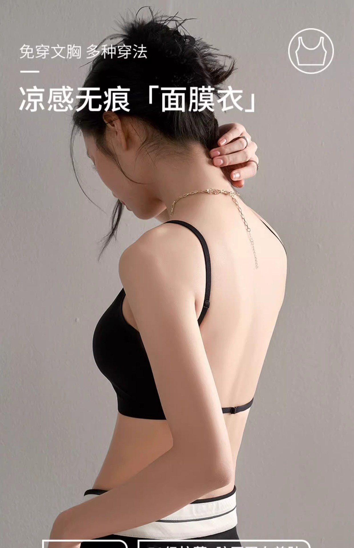 美背下着の女性の胸が夏のベストu型に集まっています。