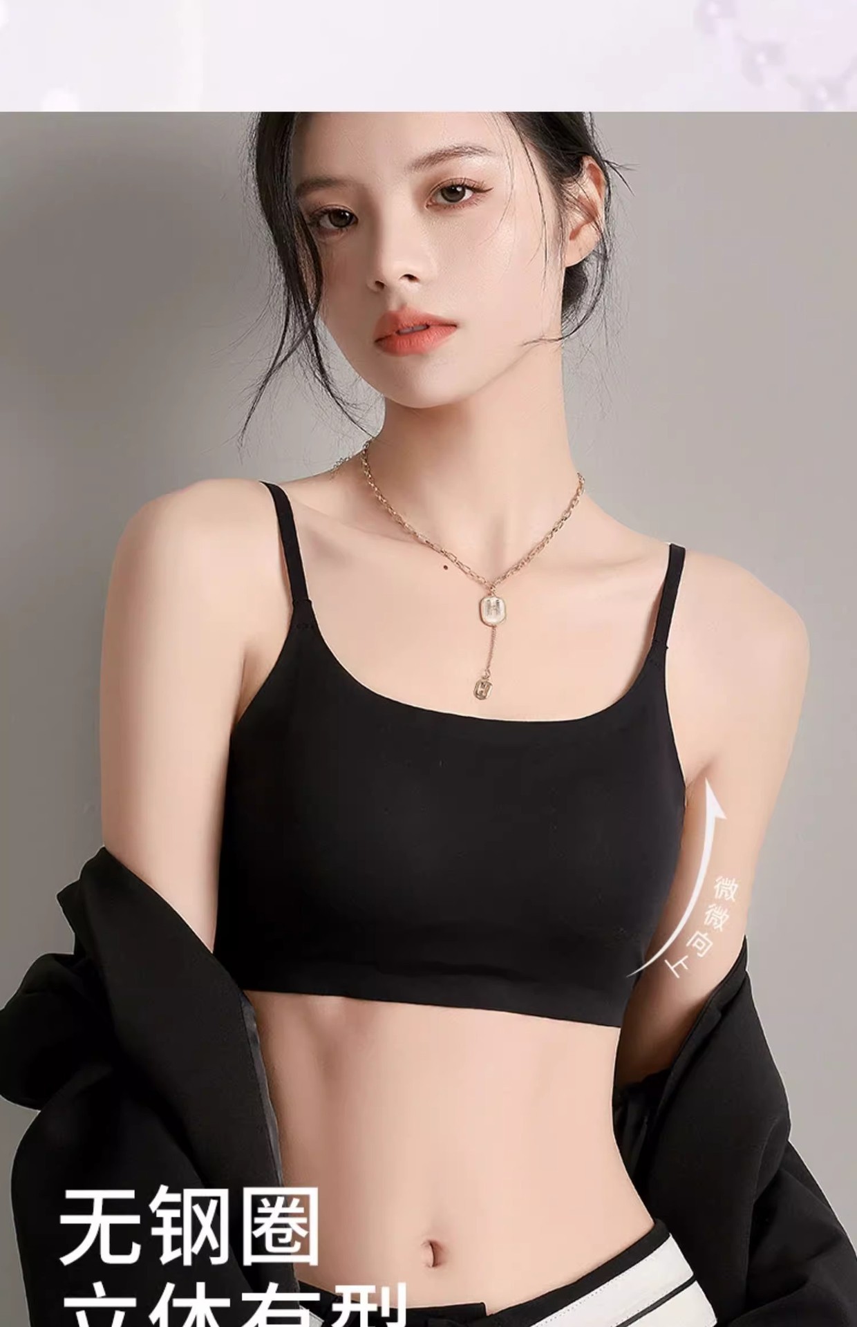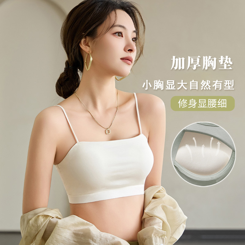 4cmの下着を厚くして、女性は胸の大きい細い肩のベルトを見せて、胸を巻いて胸をつぶします。
