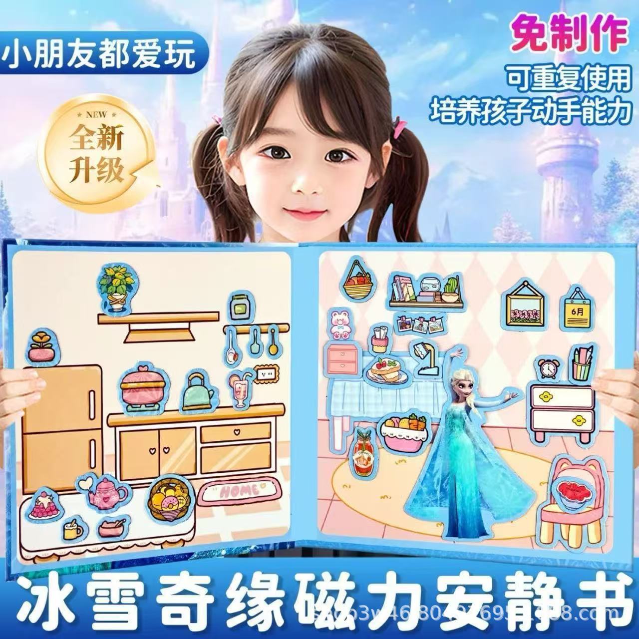 愛莎の王女の磁気の静かな本の新型の女の子のおもちゃの艾莎の磁気は磁気を貼って手のdiyを吸収してステッカーを交換します。