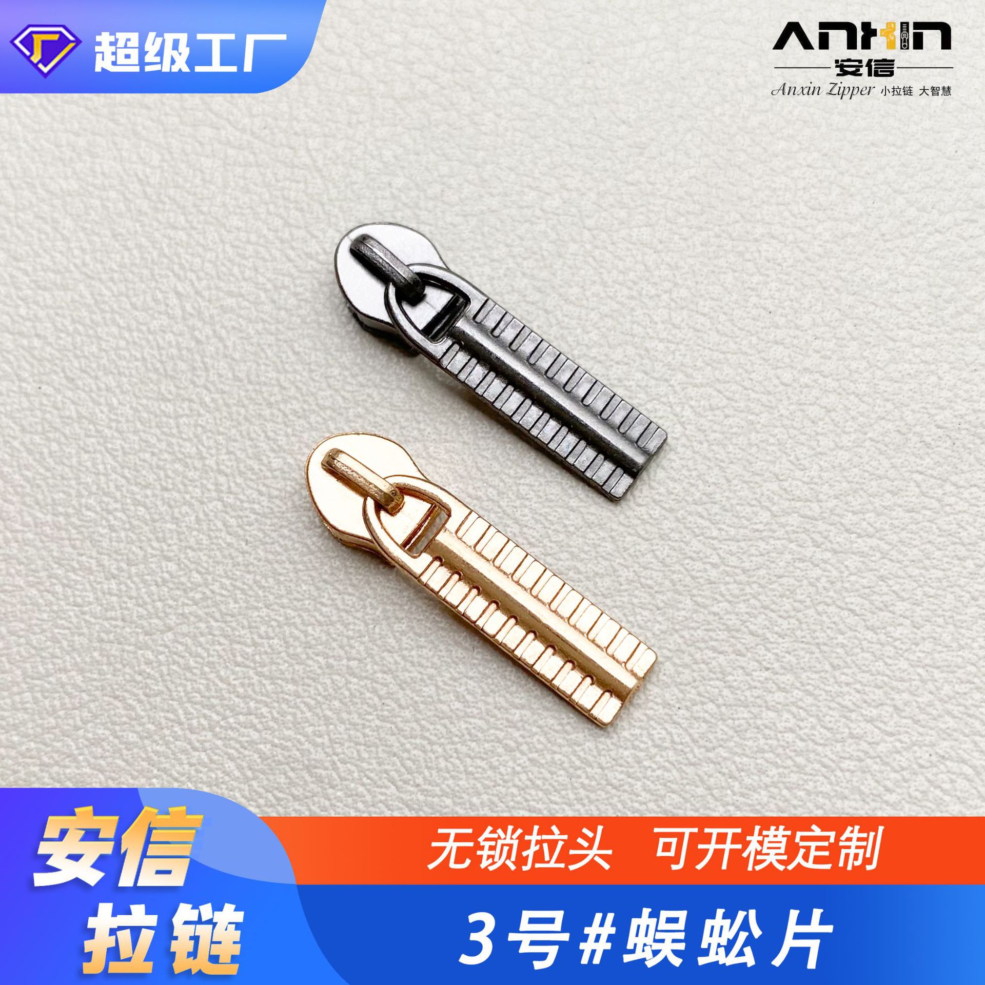 在庫あり3号ムカデ型ジッパー頭、衣類、寝具、布製品、布団カバー用ジッパー、交換用ロック、金属製ジッパー頭