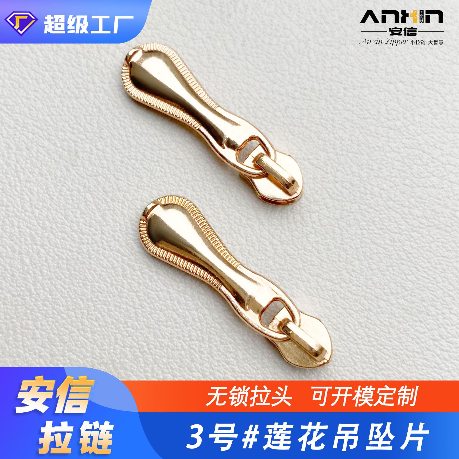 カスタム3号5号8号ナイロン金属樹脂子供服コート漫画ジッパーヘッド掛けメッキ金色プルヘッド卸売り
