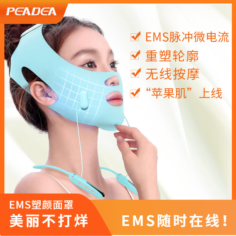 EMS脉冲v脸按摩仪家用瘦脸面罩提拉紧致塑形脸部改善双下巴V脸器