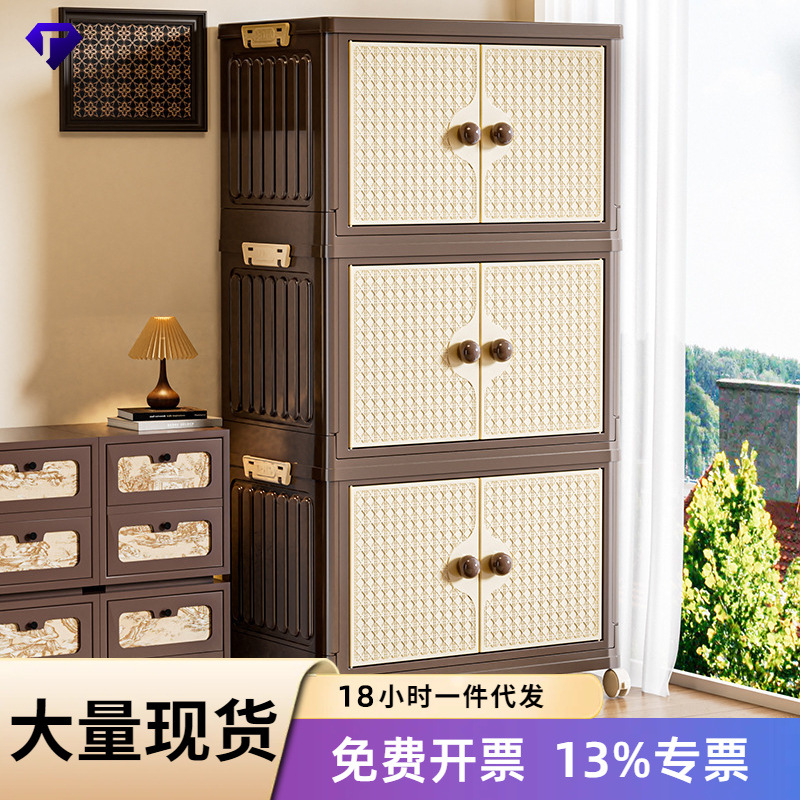 収納キャビネット家庭用折りたたみ収納ボックスアンティークリビングルームスナックキャビネット大容量寝室多層衣類収納キャビネット