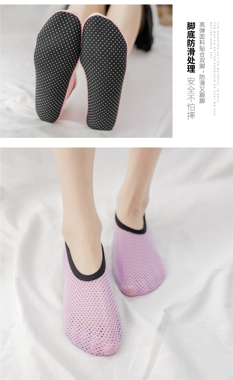 夏の床の靴下の成人の女性の滑り止めの底の室内の床の靴の男性の大人の柔らかい底の冷たい靴下のカバーのメッシュの薄い金