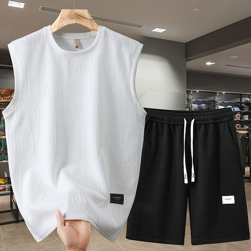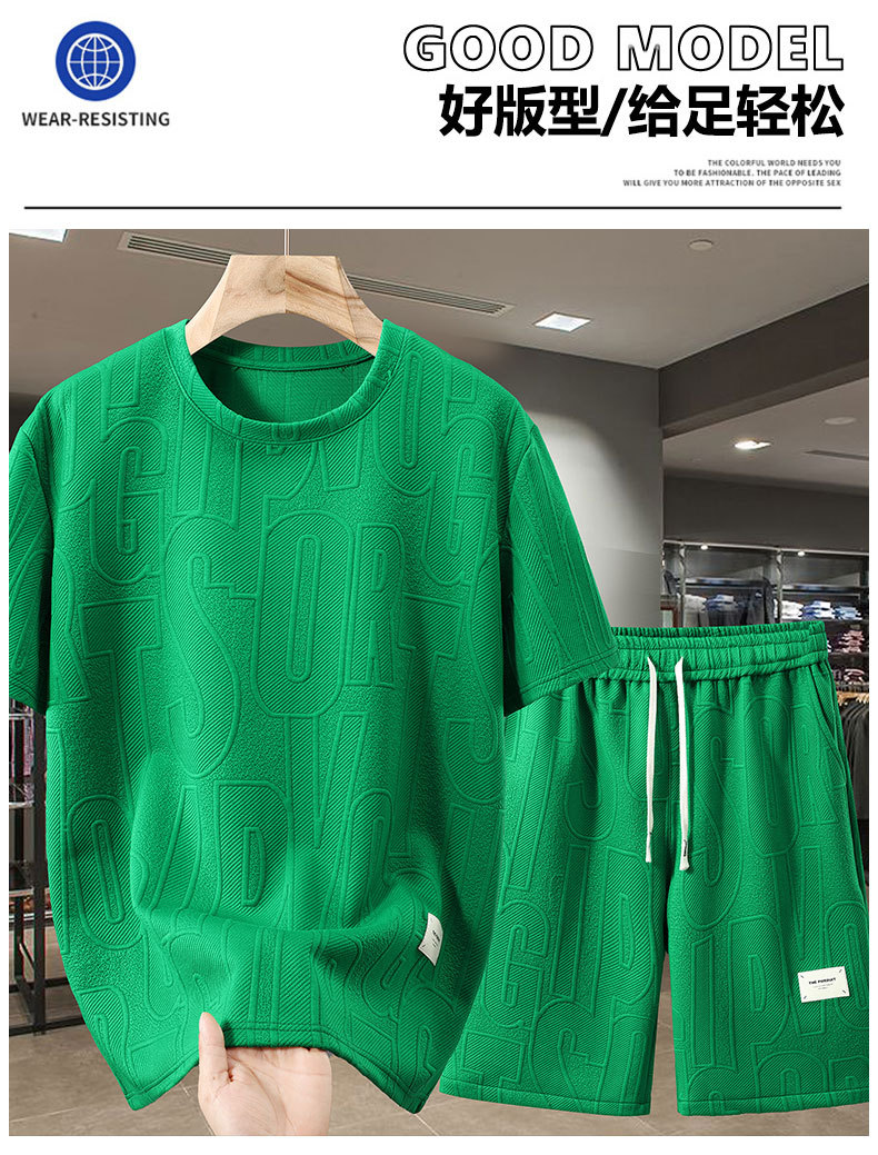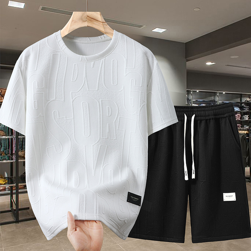 夏の重ポンドのカジュアルスーツの男性式のゆったりした大きいサイズの半袖は袖の半ズボンのスーツを切って太っています。