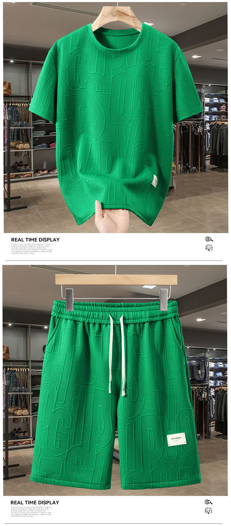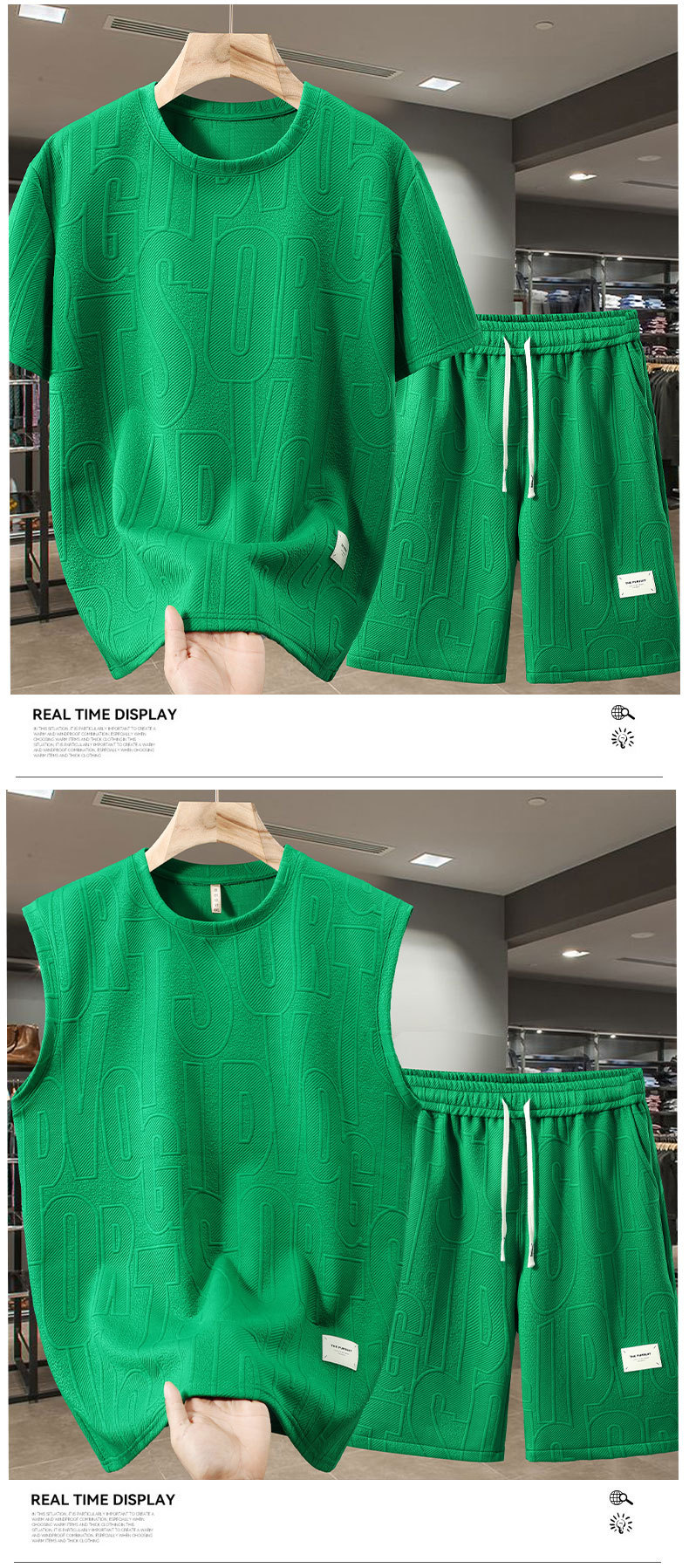 黒のTシャツショートパンツスーツ,グリーンのTシャツとショートパンツのスーツ,白いTシャツとショートパンツのスーツ,緑のTシャツと黒のショートパンツスーツ,白いTシャツと黒いショートパンツスーツ,白い袖のショートパンツスーツ,黒のカットスリーブショートパンツスーツ,グリーンのカットスリーブショートパンツスーツ,白いカットスリーブの黒いショートパンツスーツ,緑のカットスリーブ黒のショートパンツスーツ