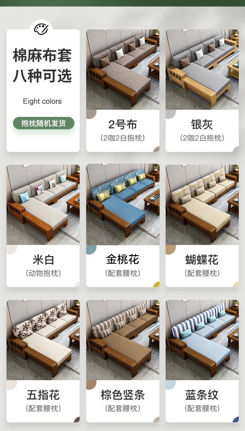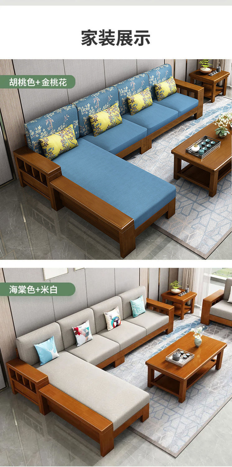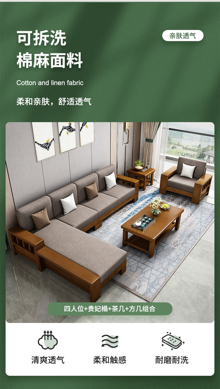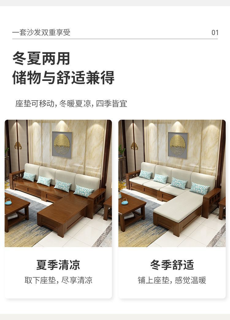 実木ソファー中国式客間家具サイズ戸型木加布貯蔵物高箱冬夏両用ソファーセット