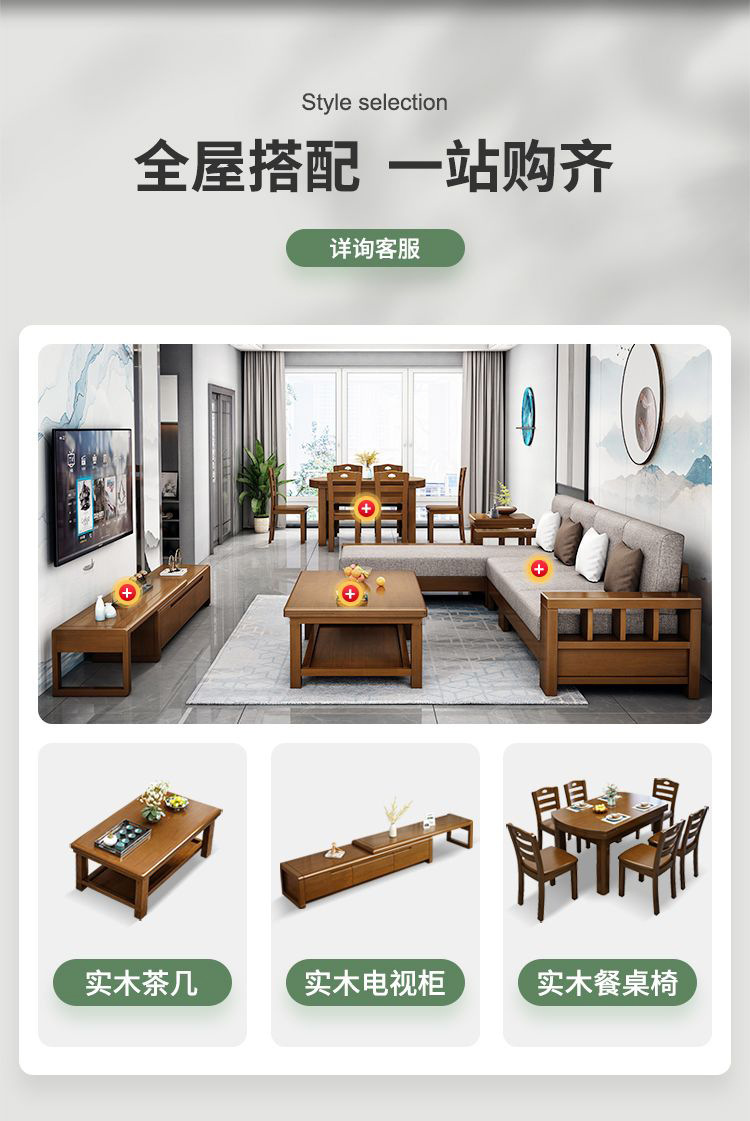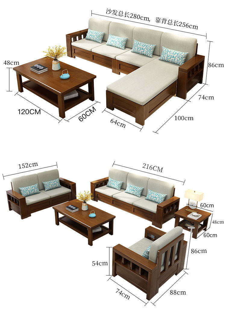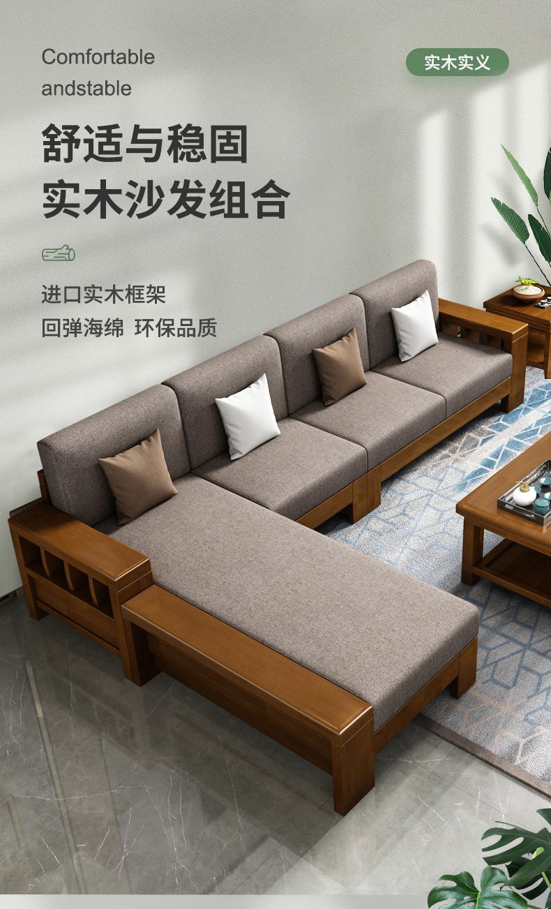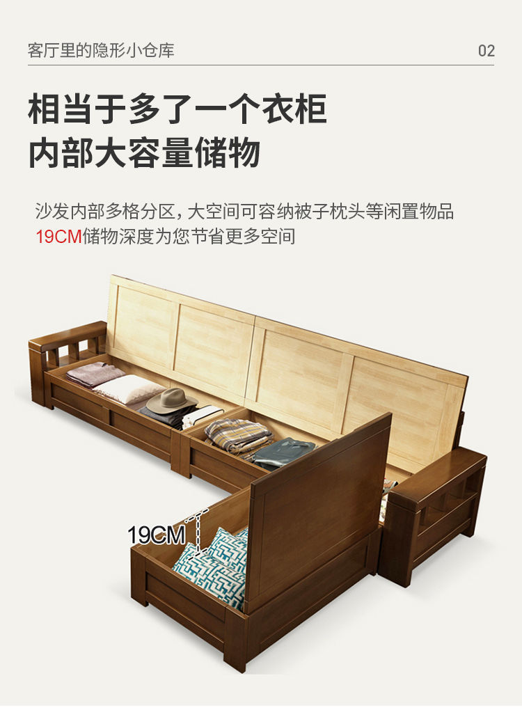 実木ソファー中国式客間家具サイズ戸型木加布貯蔵物高箱冬夏両用ソファーセット