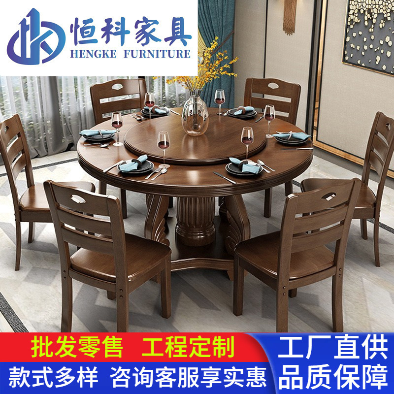 シンプルな実木食卓円卓椅子とターンテーブル付き家庭用食卓円形テーブルと実木食卓の組み合わせ