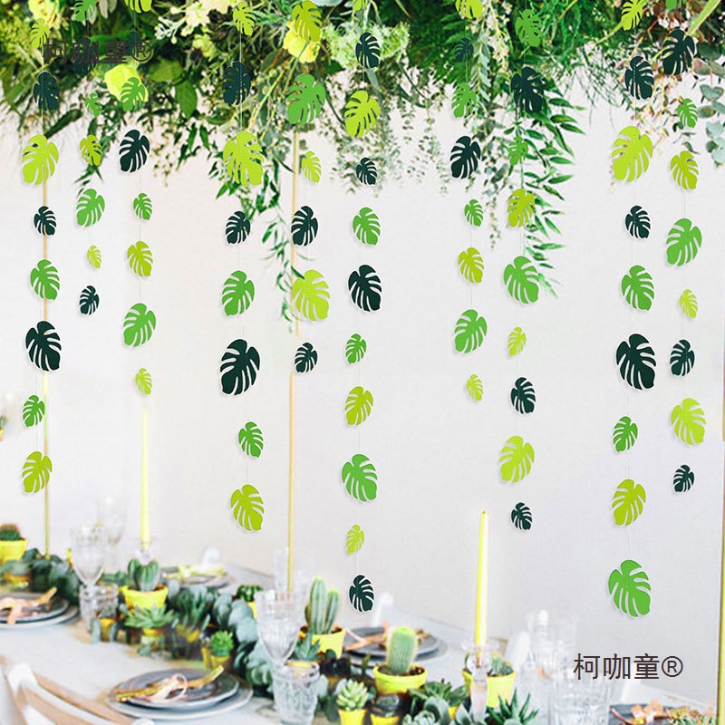 ショッピングモールの森の春の雰囲気のレイアウト、葉っぱの旗、創造的な吊り下げ装飾、幼稚園の教室、牧歌的なスタイルのリング、マイテバオ