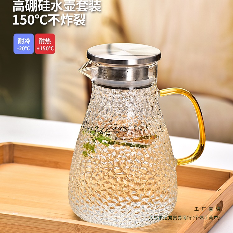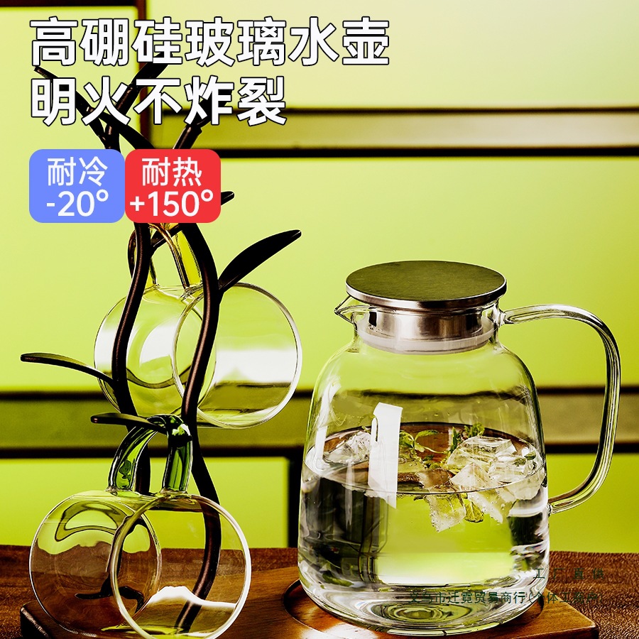 冷水壶玻璃耐高温家用客厅大容量凉水壶白开水杯套装耐热泡茶壶无
