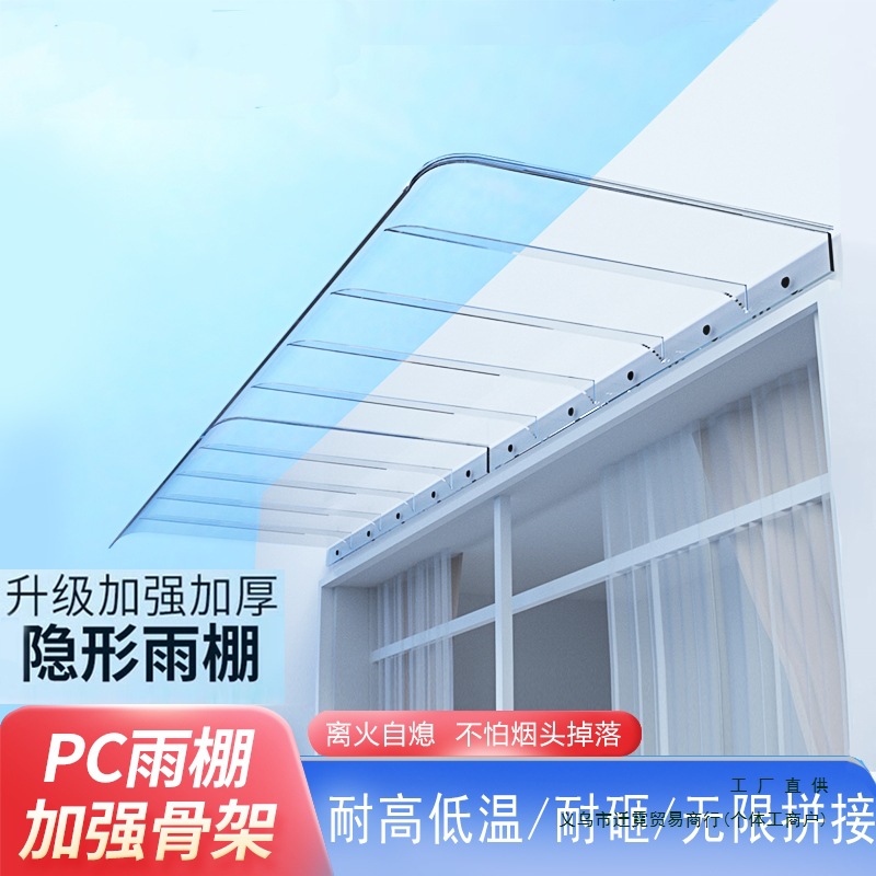 透明无支架隐形雨棚pc耐力板窗户屋檐阳台家用遮阳雨搭遮雨挡雨板
