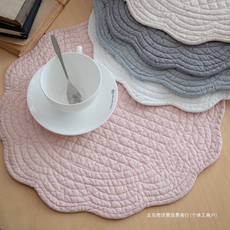 シンプルな純色刺繍布芸食マット断熱テーブルマット厚い皿マット感家庭用円形小学生マットコースター