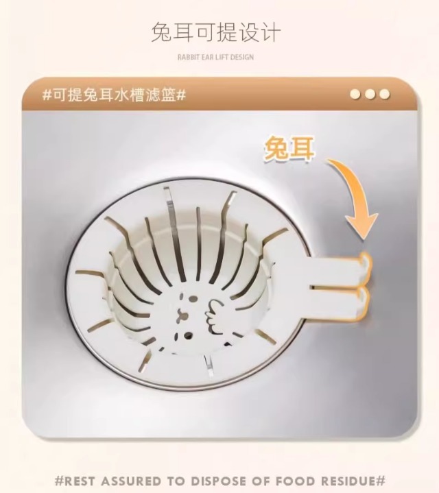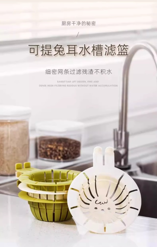 持ち運び可能なウサギの排水バスケットシンクフィルター耳デザイン防虫フィルター家庭用食器洗いシンクポータブルアンチブロッキング