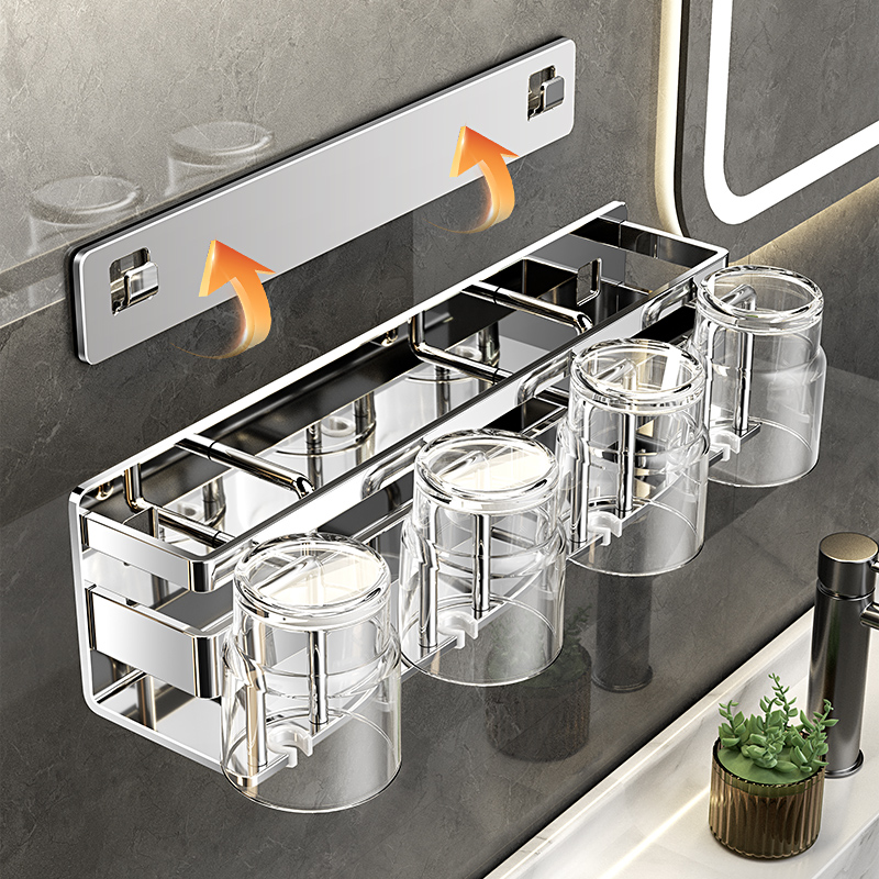 パンチングバスルーム収納ラックフリーカップ 304 ステンレス鋼壁掛け歯磨きとマウスウォッシュバスルーム歯ブラシ収納ラック