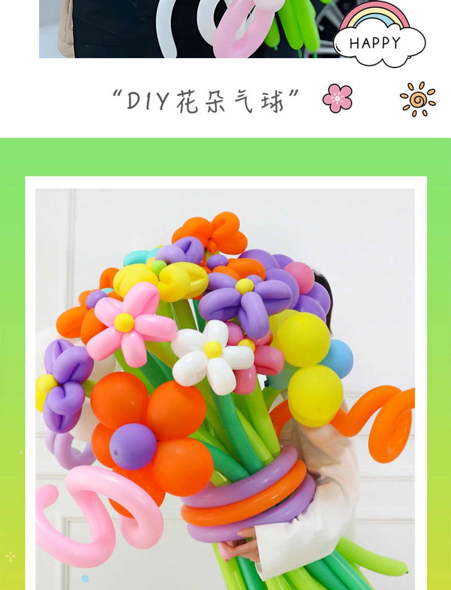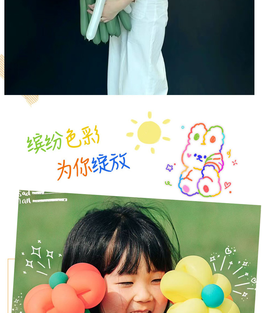 多巴胺彩色儿童户外拍照烟花气球长条男女孩生日派对装饰布置汽球