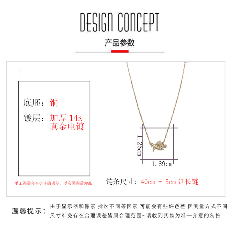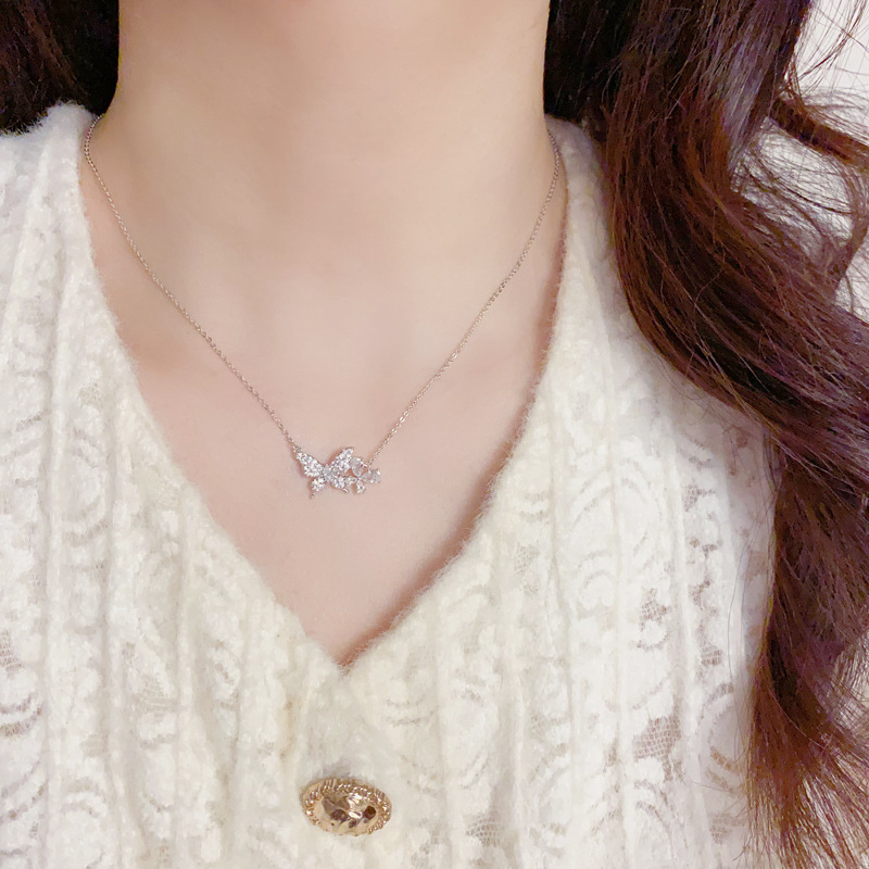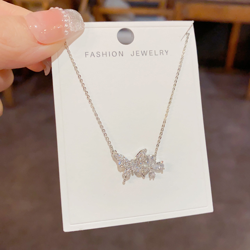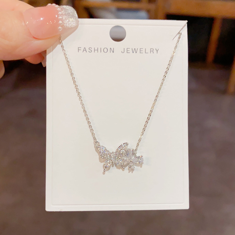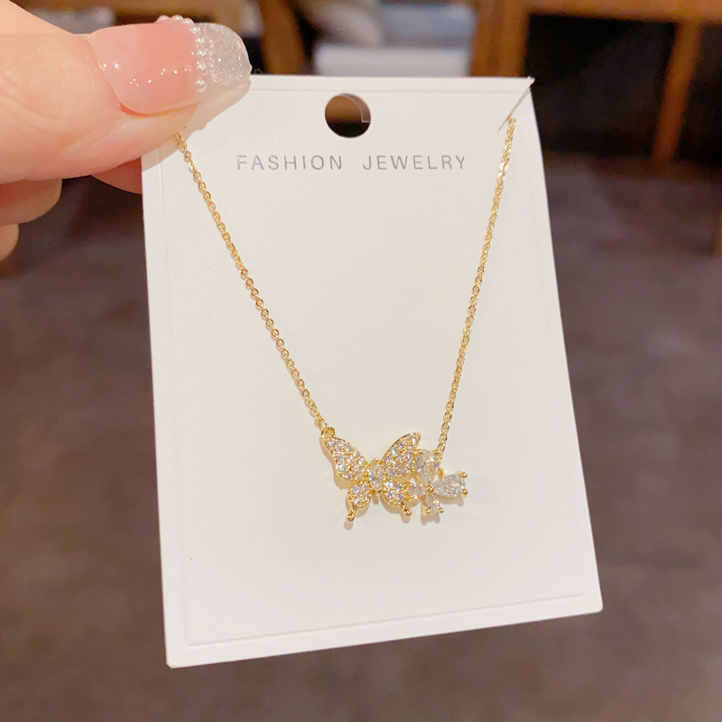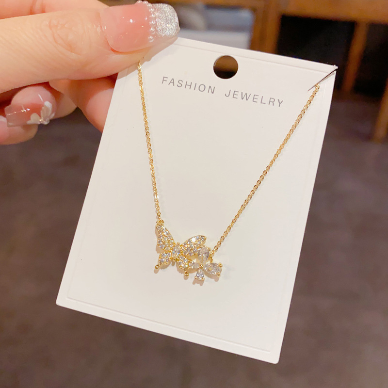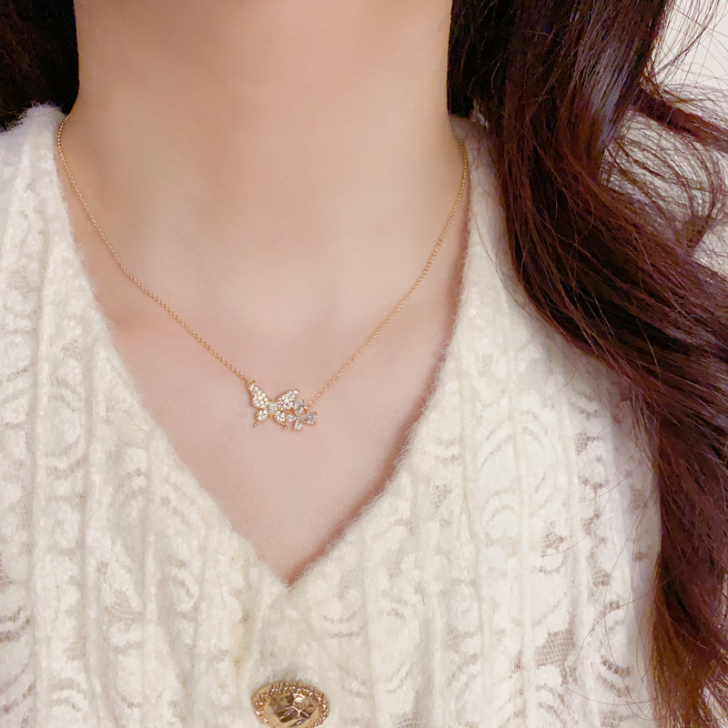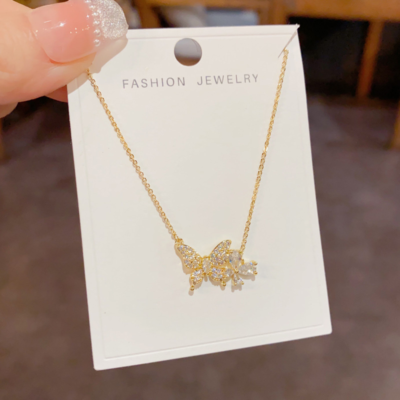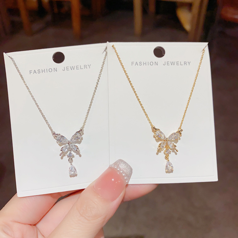 小型ジルコン蝶水滴ネックレス軽豪華ファッション大衆デザイン高級感ネックチェーン洗練された鎖