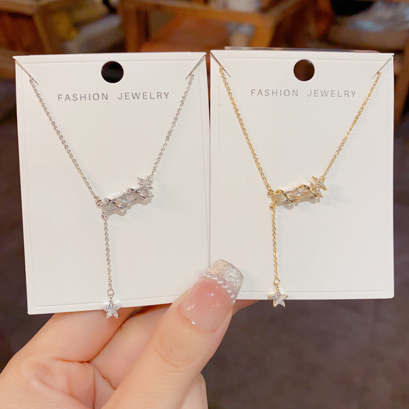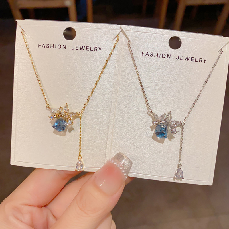 日韩精致时尚轻奢蝴蝶方钻流苏项链个性简约甜美百搭设计感锁骨链