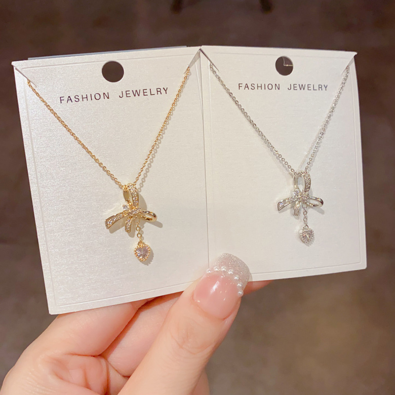 轻奢时尚百搭高级感锆石蝴蝶结爱心流苏项链个性精致简约锁骨链女