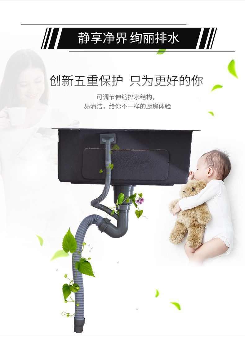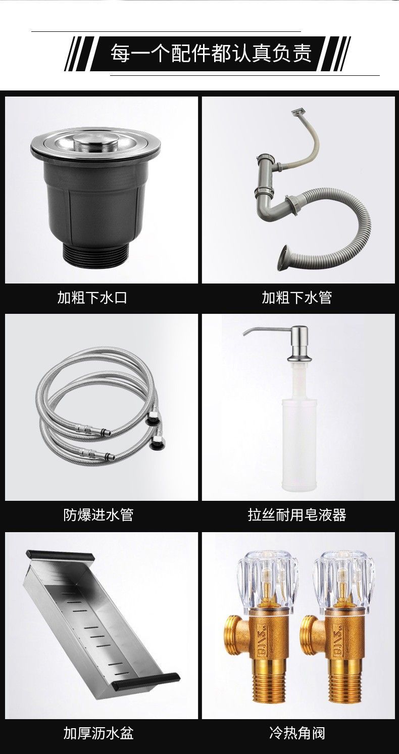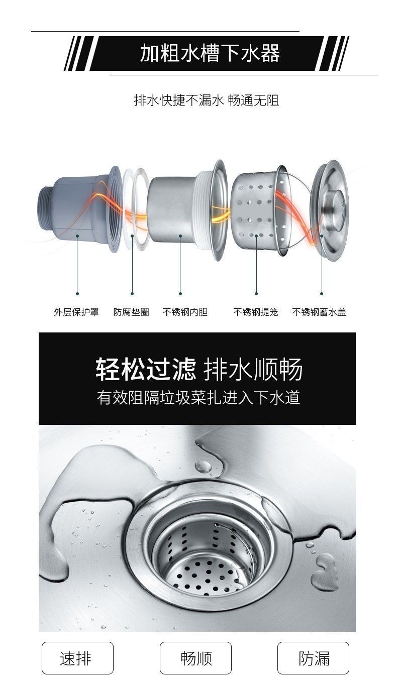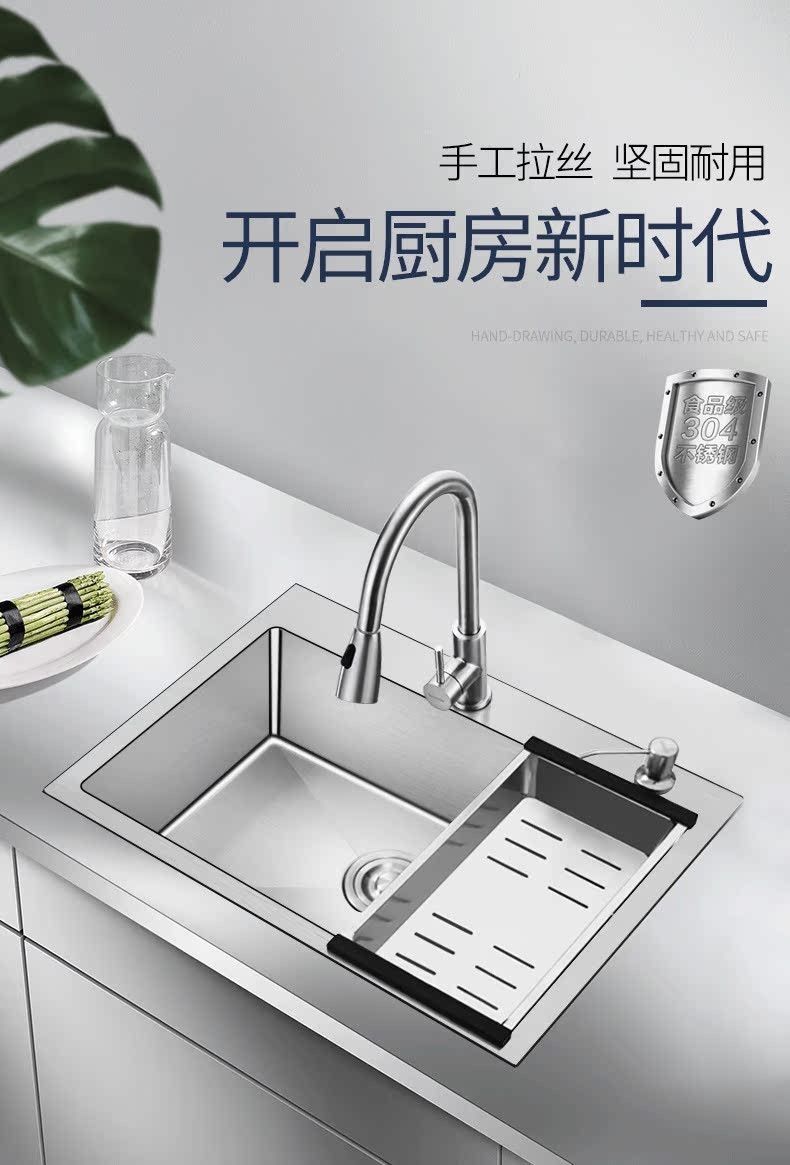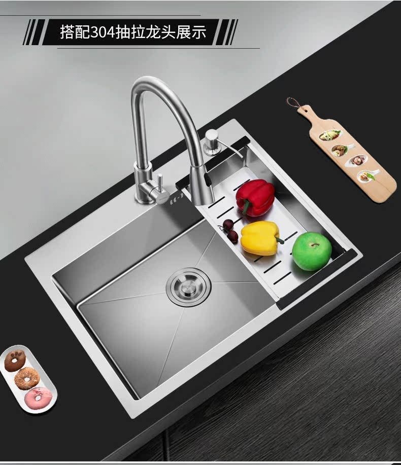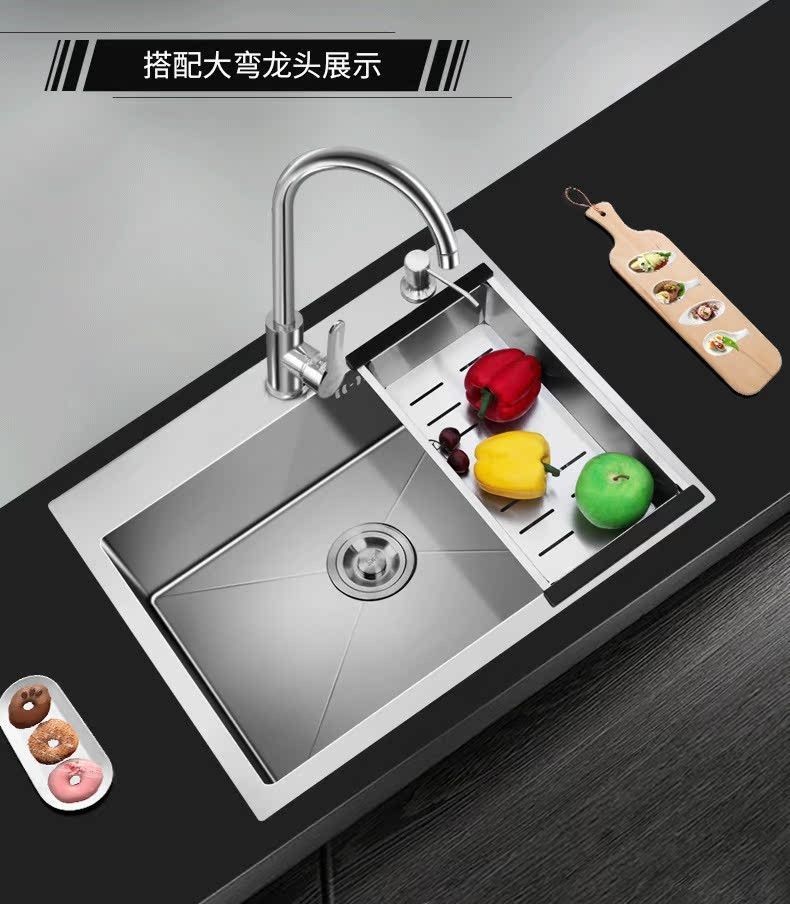 sus304加厚不锈钢厨房水槽洗菜盆家用洗水槽台下一体大单槽淘菜盆