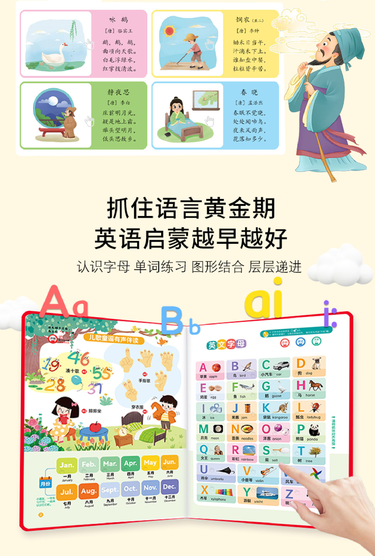 話せる赤ちゃんが話すことを学ぶ0-3歳の言語啓蒙幼児が発声書を読む早教玩具有声書