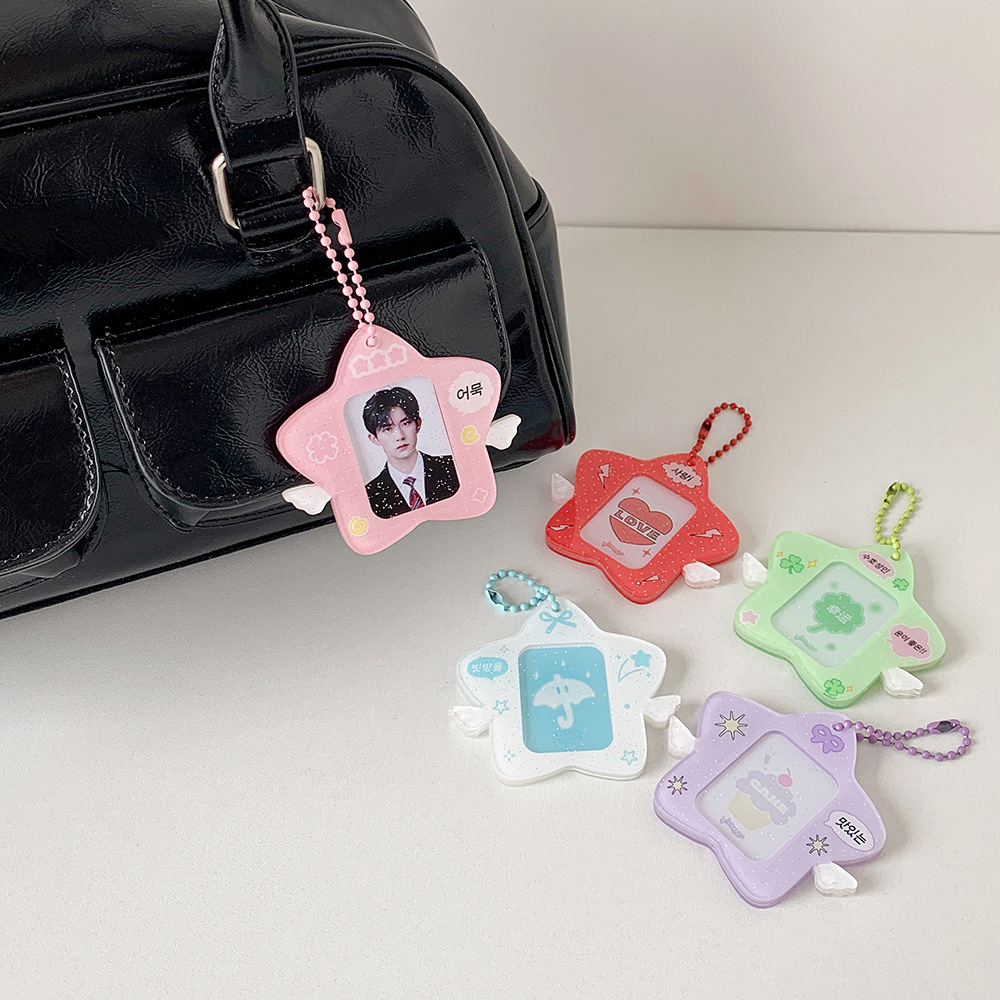 オリジナルアクリルスター羽カードホルダー学生 1.0inch ID 写真ペンダントキーホルダーバッグペンダントスターチェイシングカードホルダー